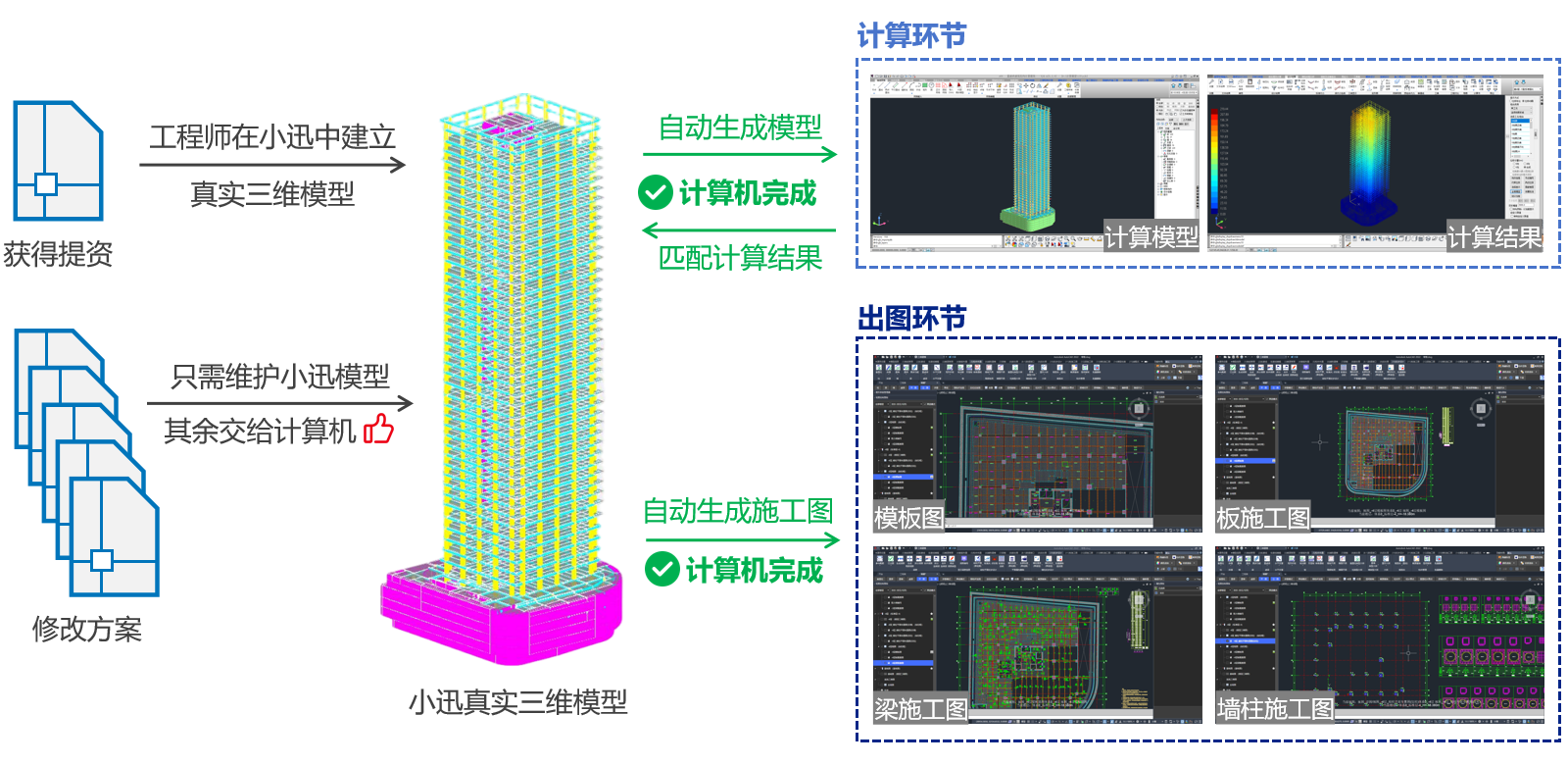 当维护了一个真实准确的三维模型后,小迅可以按照用户需求自动输出所需要的设计成果: