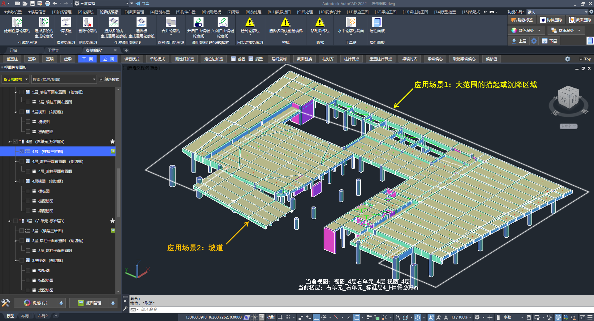 采用通用轮廓线定义大范围降板区域