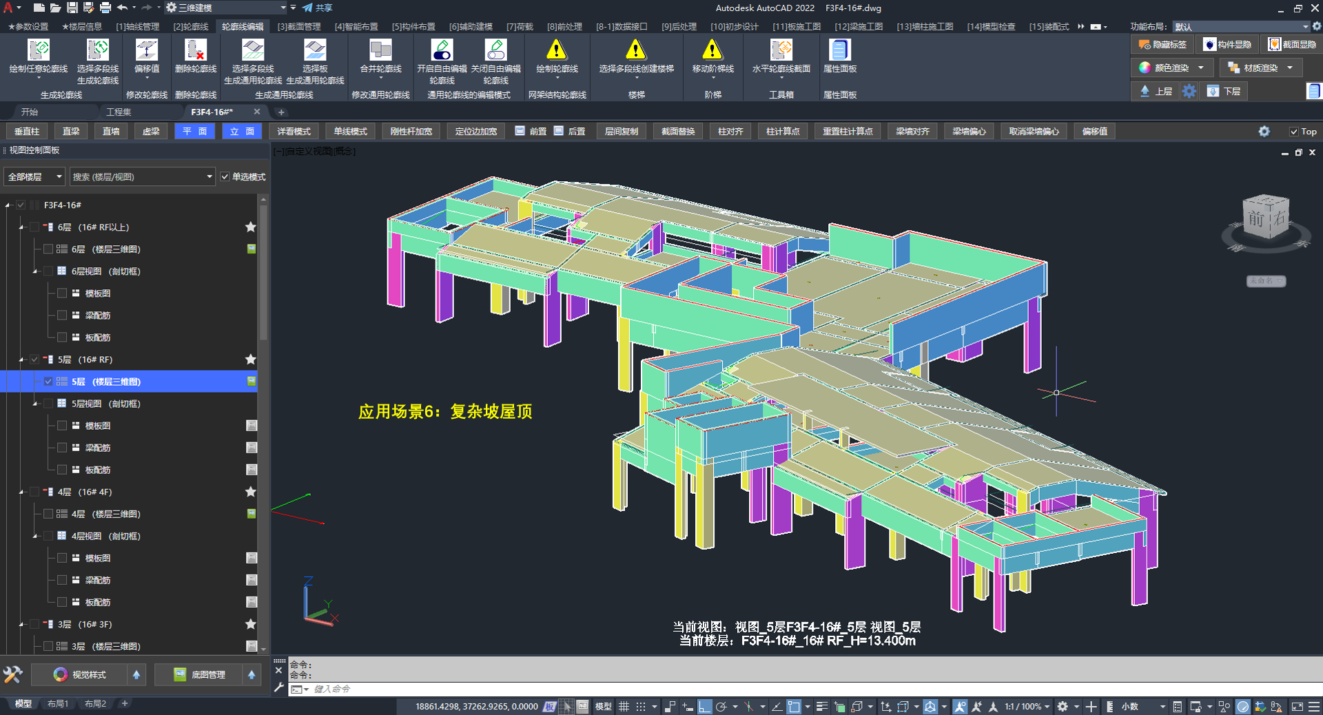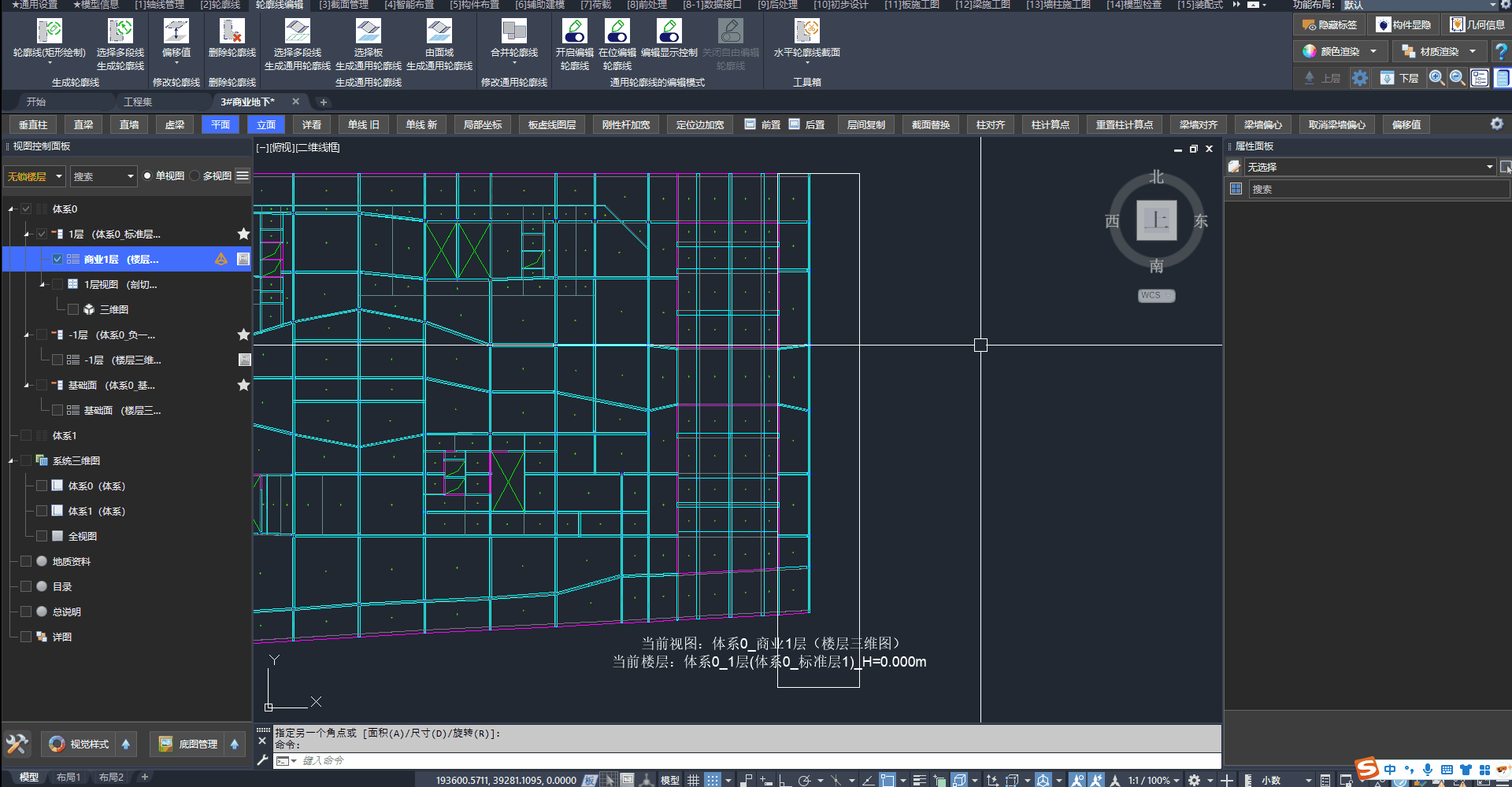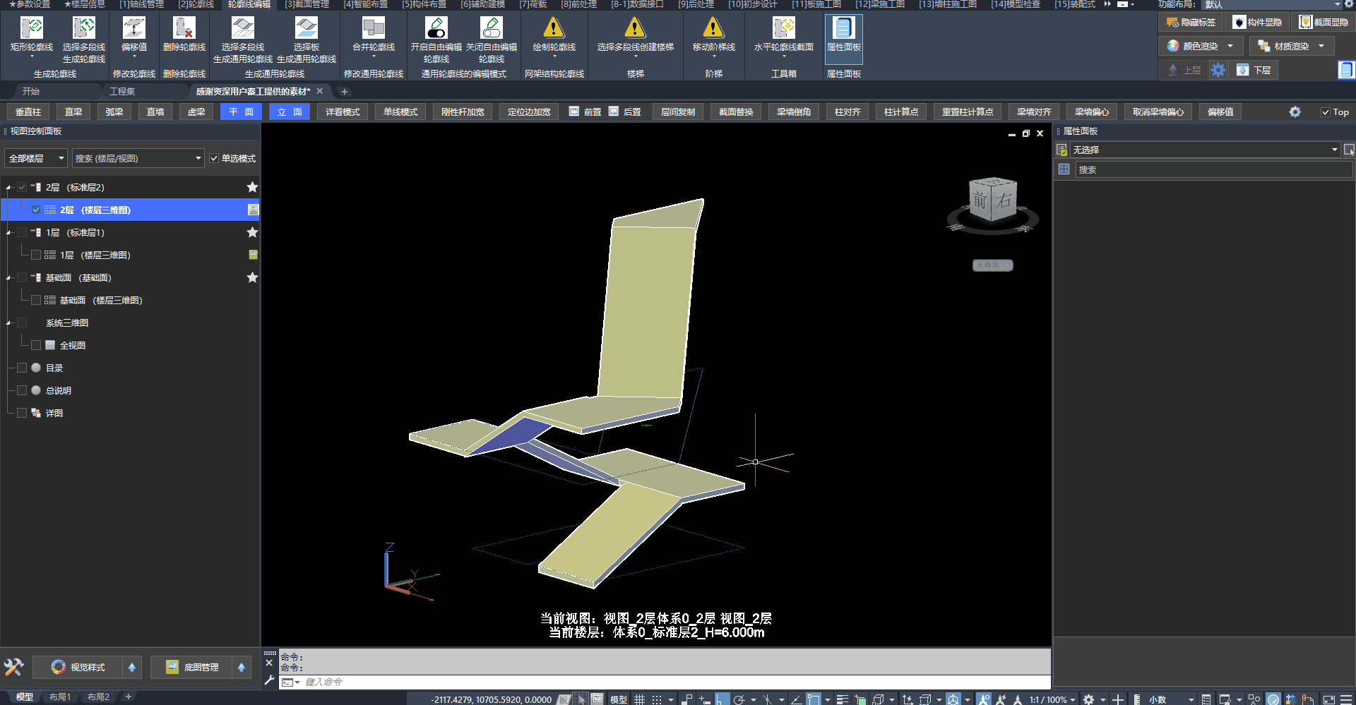 我们采用通用轮廓线创建存在大范围高差区域的地下室顶板: