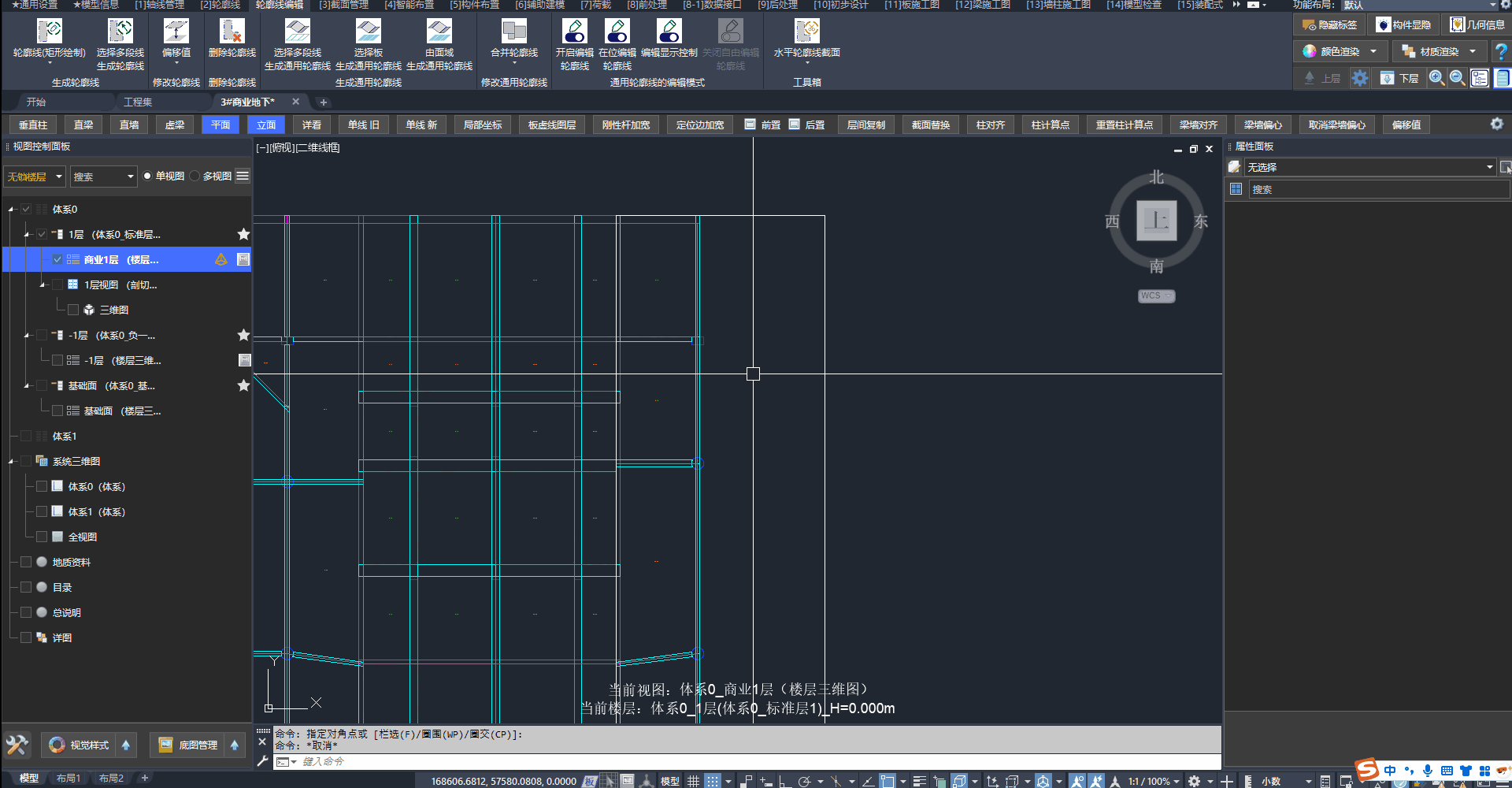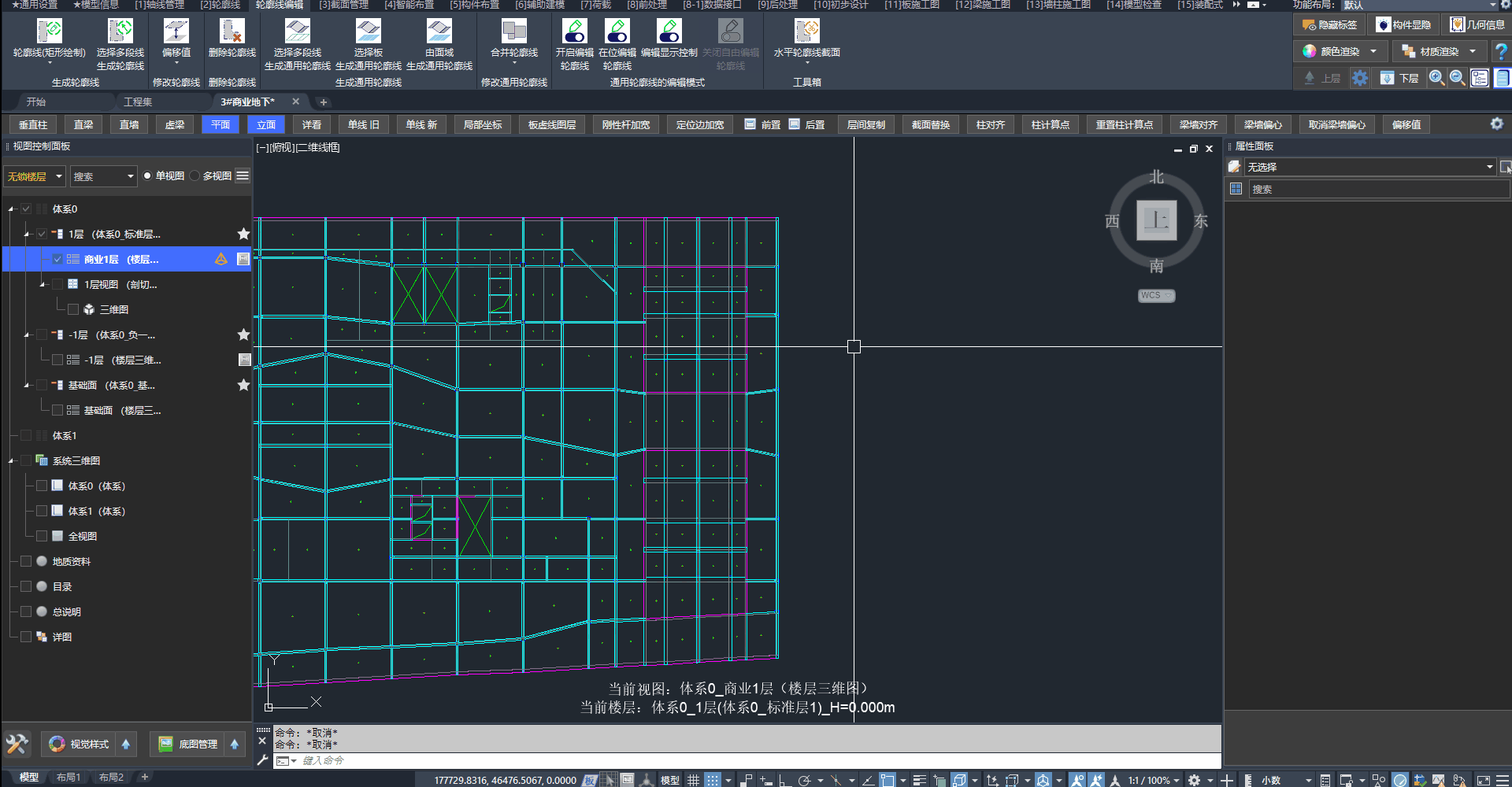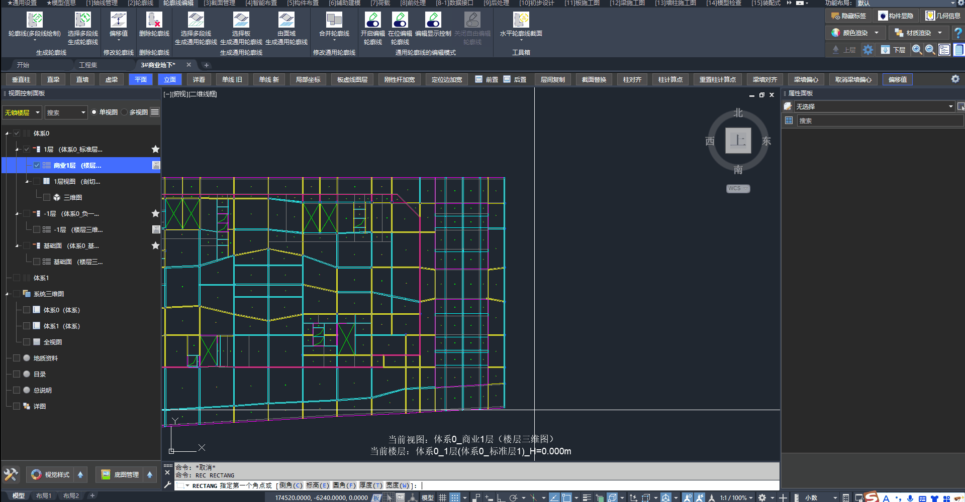 我们采用通用轮廓线创建存在大范围高差区域的地下室顶板: