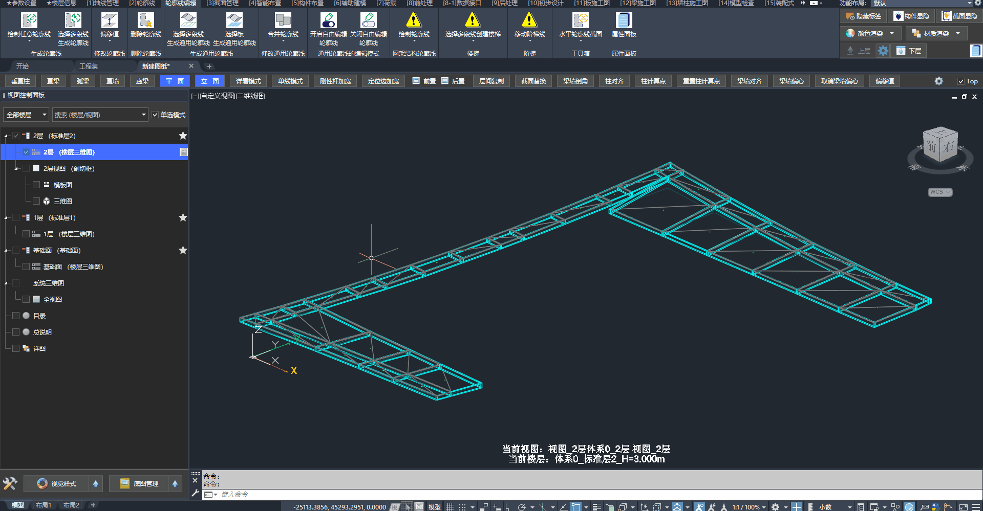 - 可以通过复制一榀桁架实现快速建模,但复制前注意视图轮廓线的信息