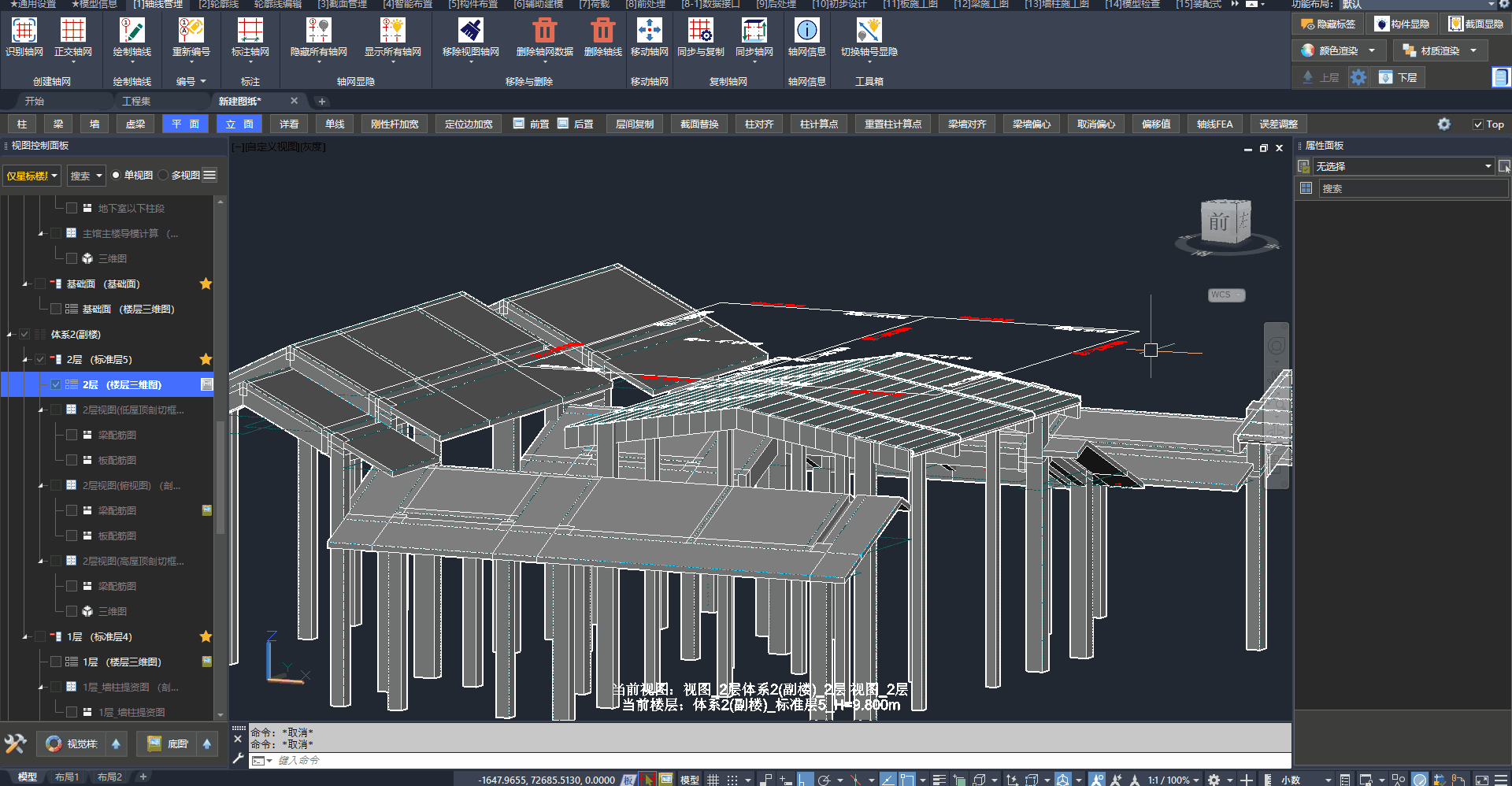 补齐边界处虚梁(注意构件的计算线)