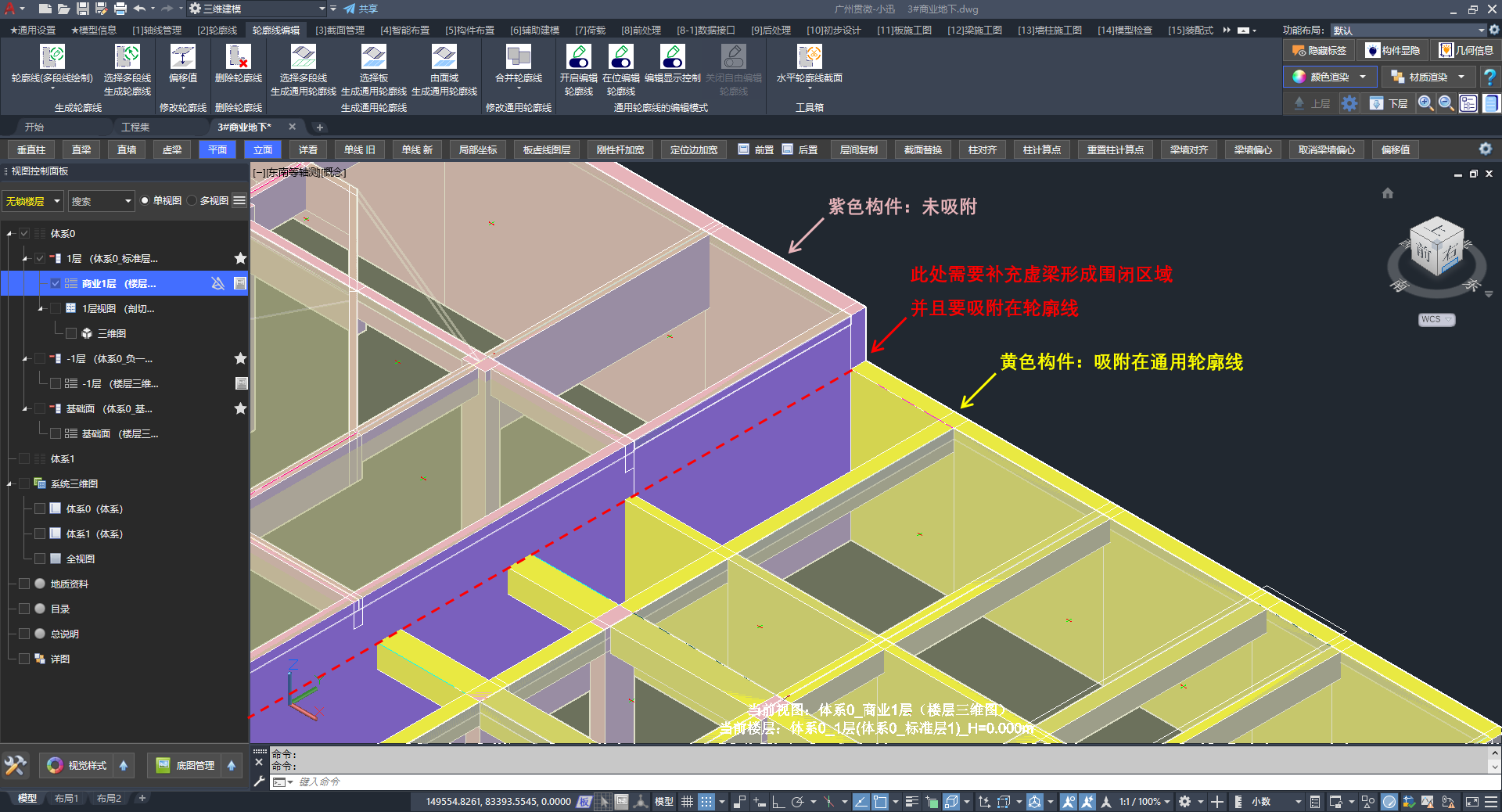 指定构件吸附轮廓线,建议采用框选的方式