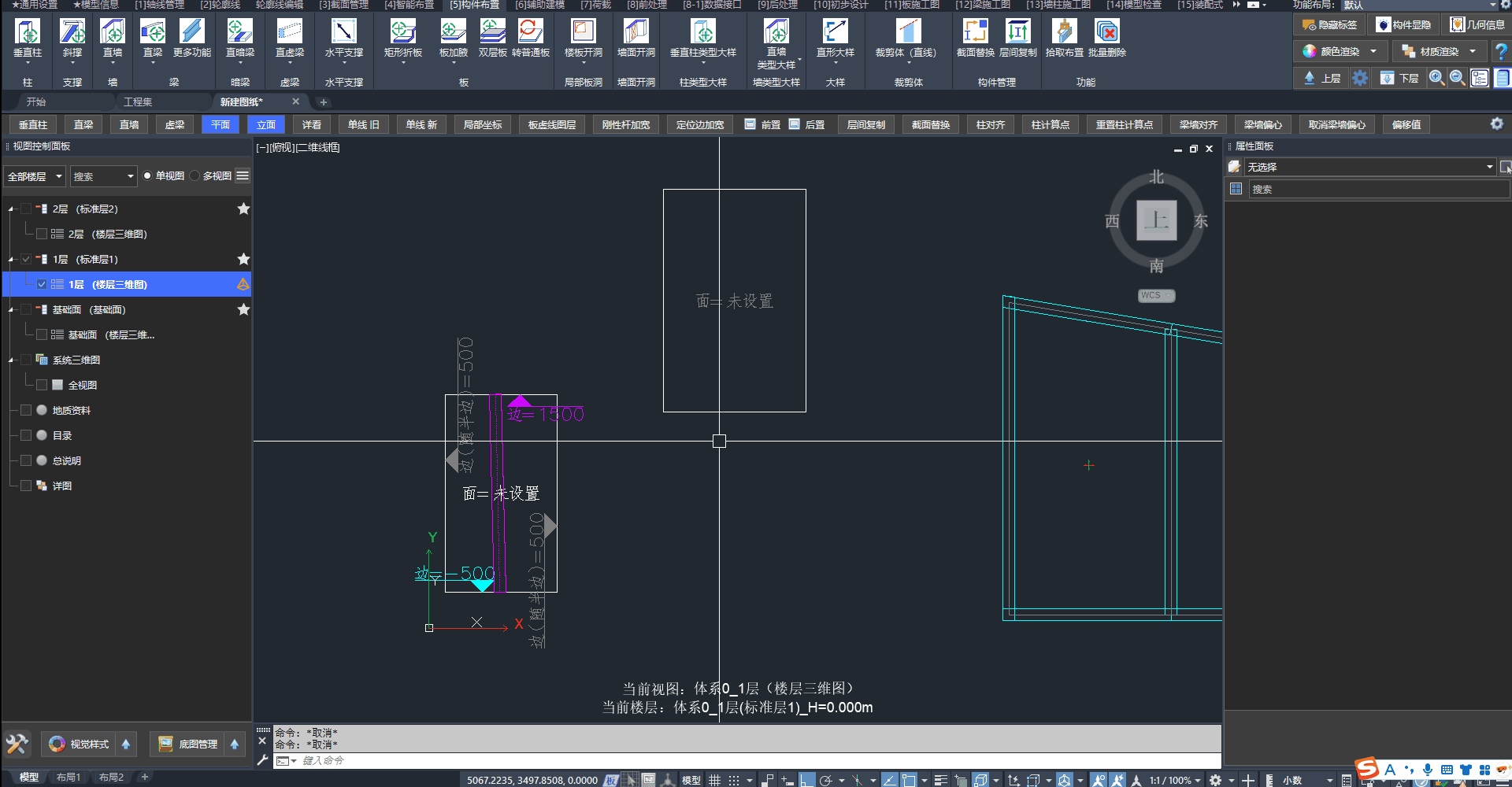 构件位于(通用轮廓线)两个面域的交界线时,构件默认吸附在绘制前进方向左侧的面域。