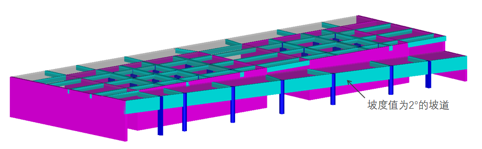 我们采用轮廓线创建坡度值为2°的室外坡道: