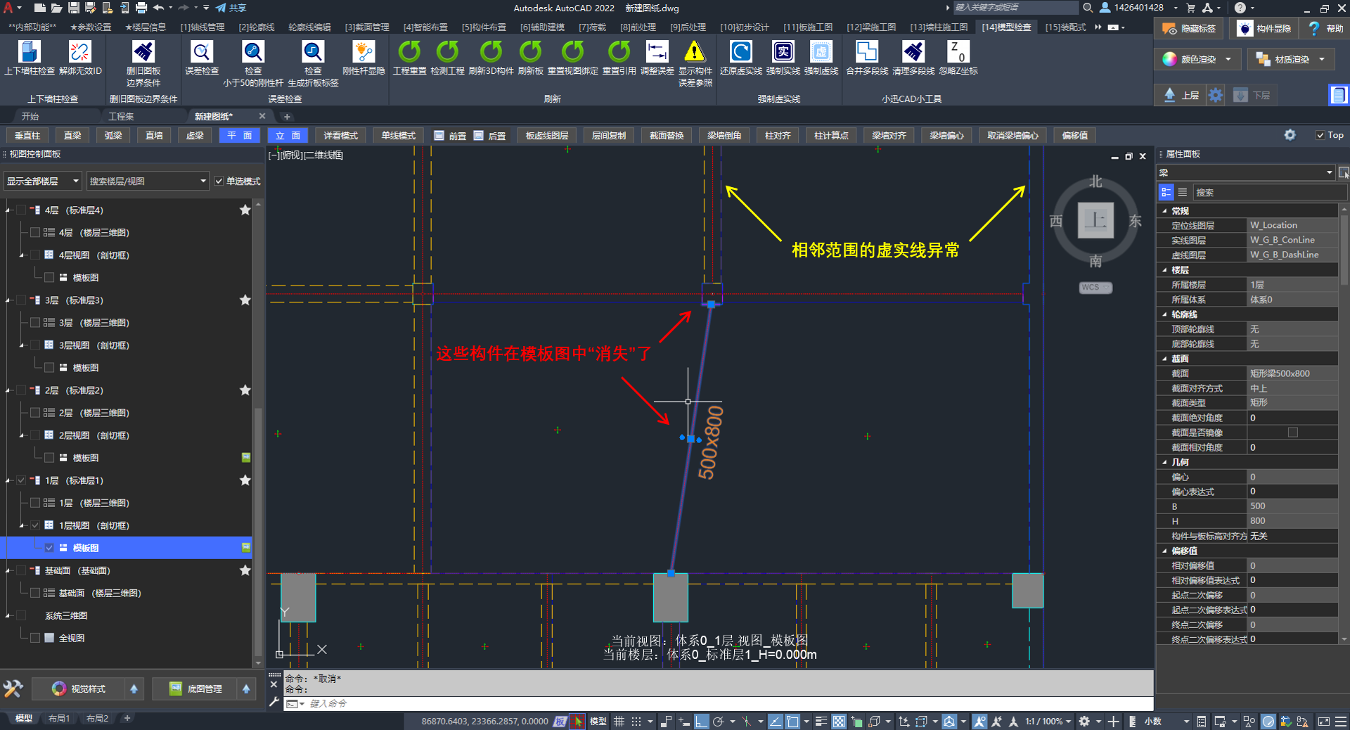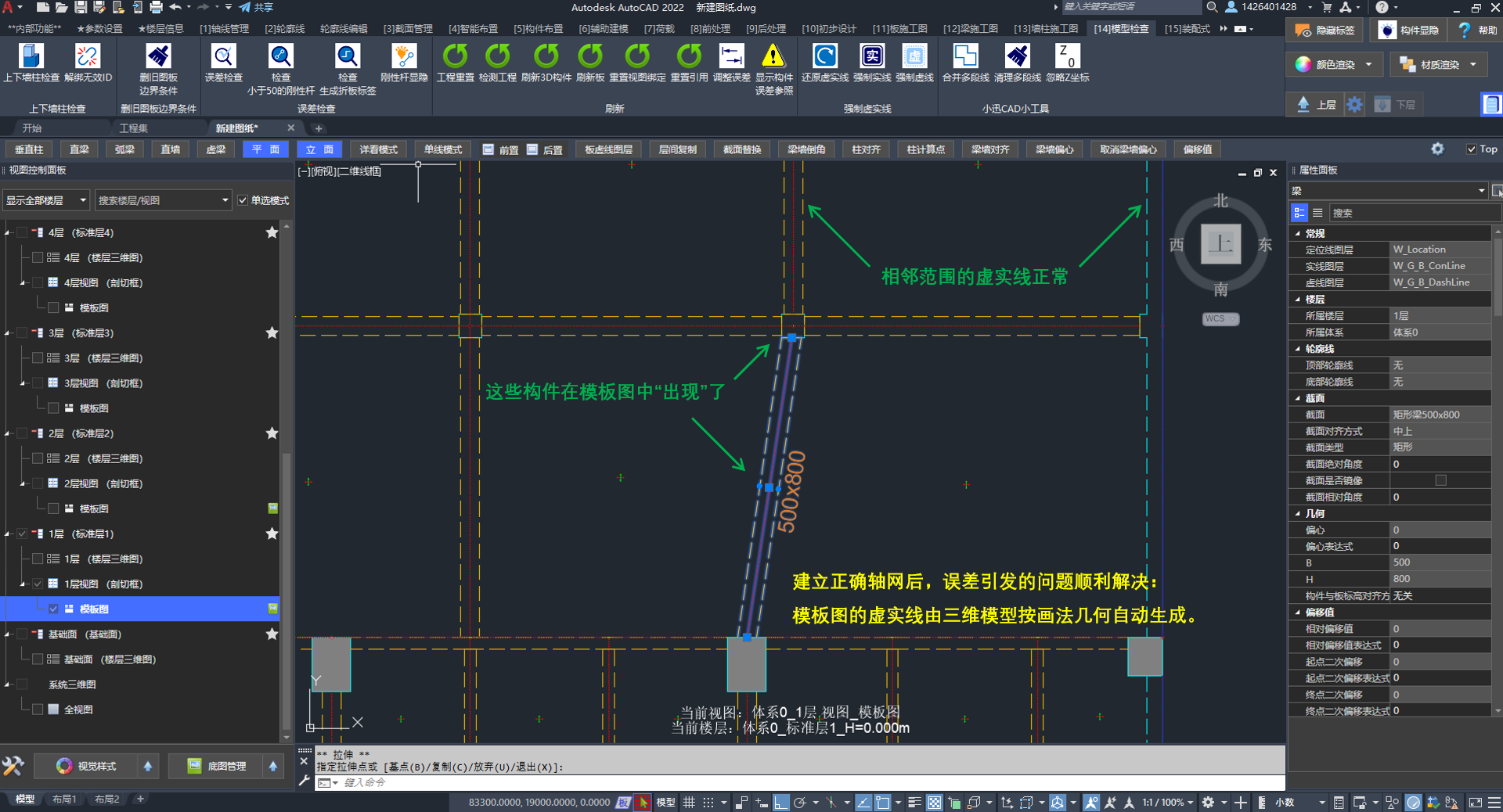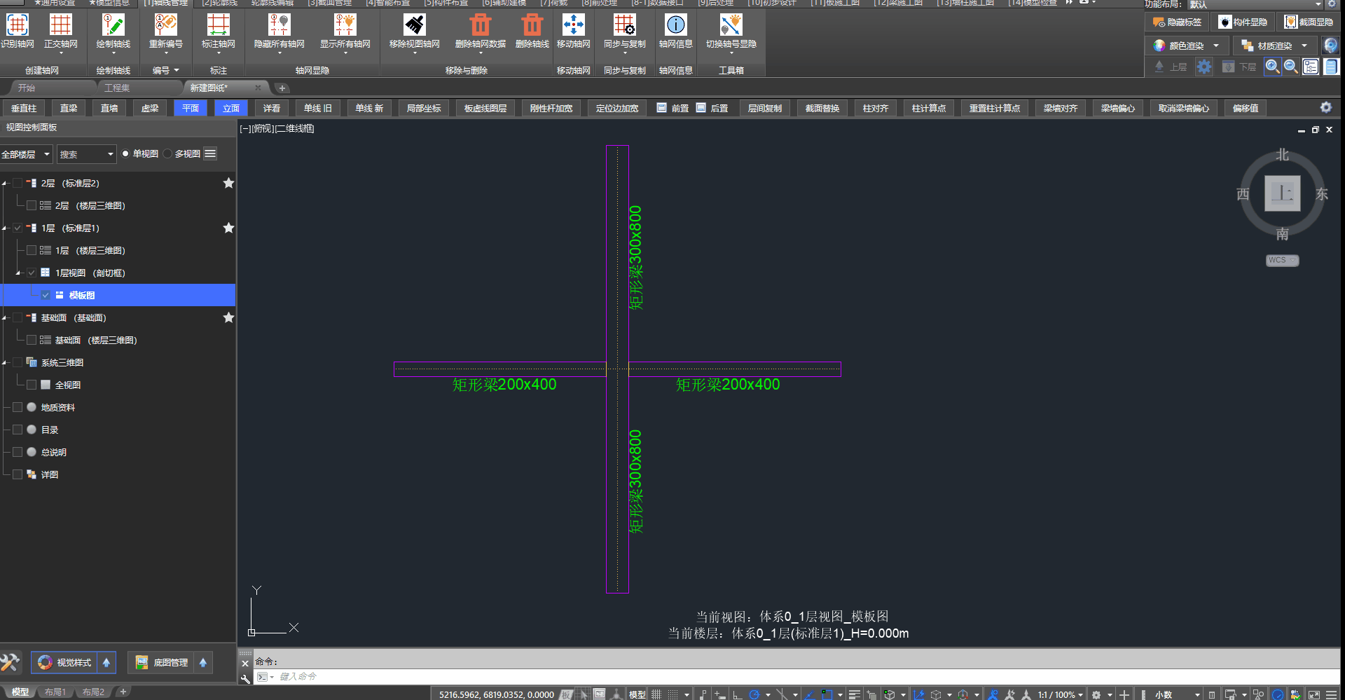 建立正确轴网后,模板图恢复正常