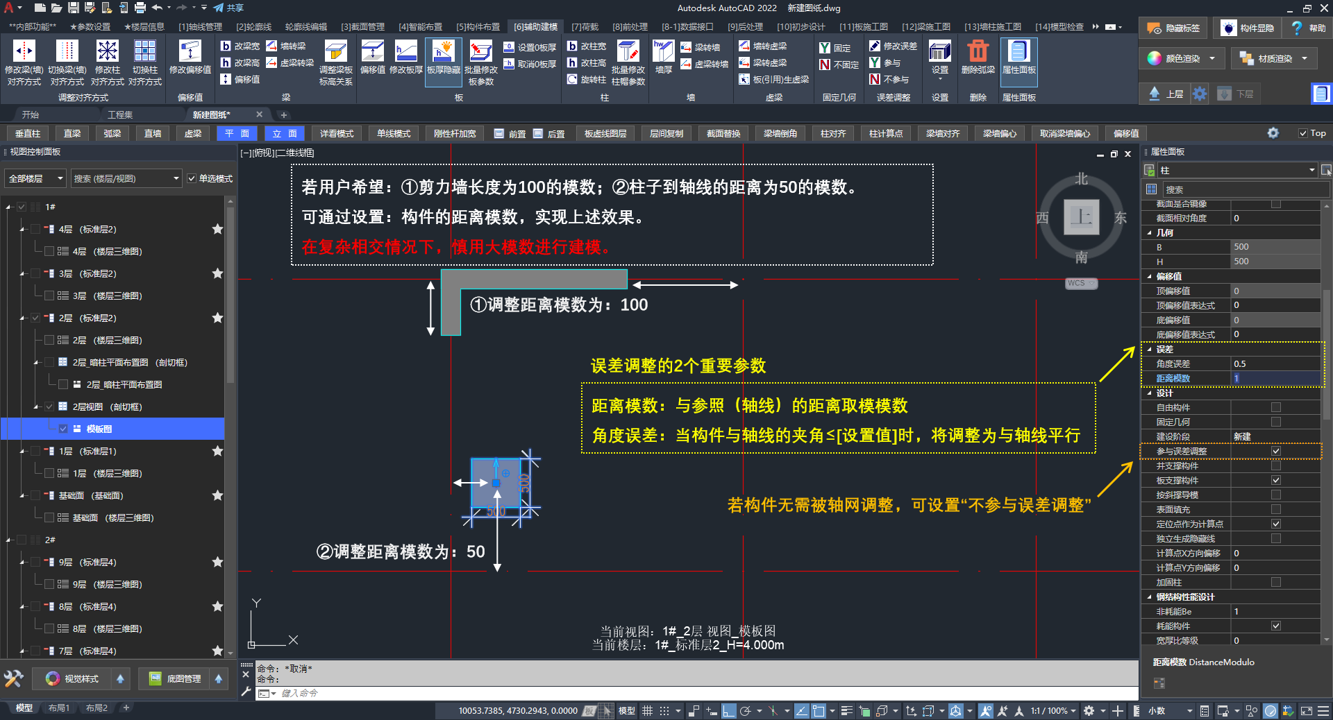 在实际工程中,用户可调整竖向构件的“距离模数”以满足工程需求:
