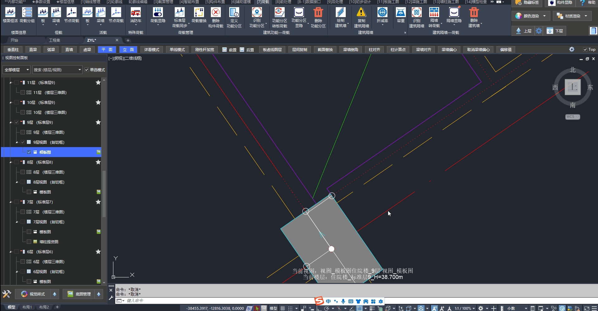 当构件围成闭合区域时会自动生成板,并自动判断边界条件。