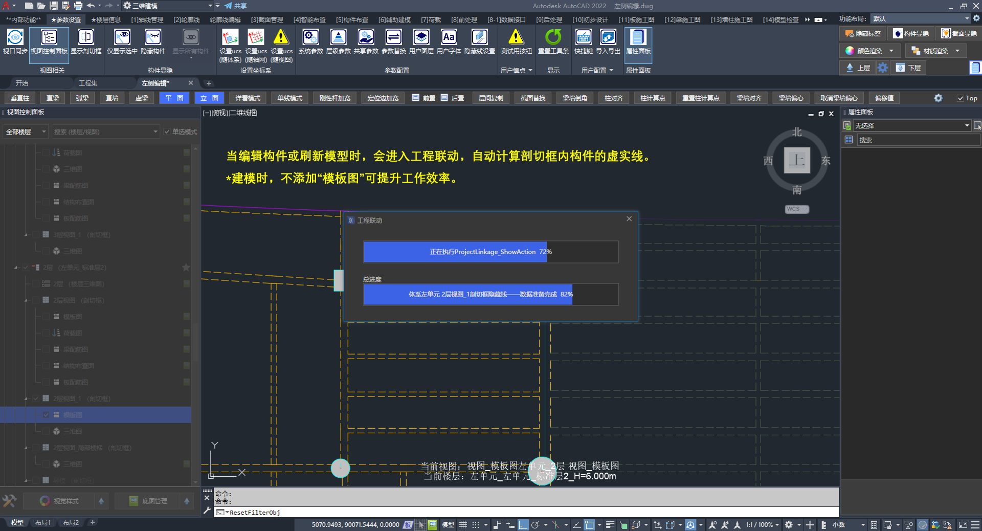 支持用户在视图(剖切框)中隐藏构件。