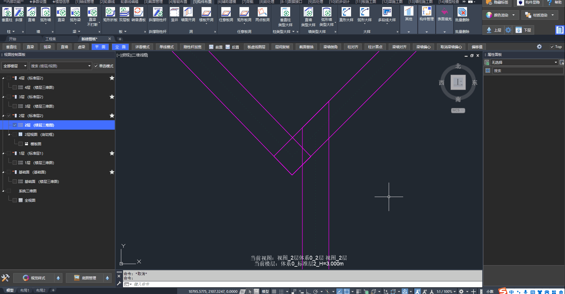 在布置时构件之间会自动创建刚性杆,以保证杆件的连接关系。
