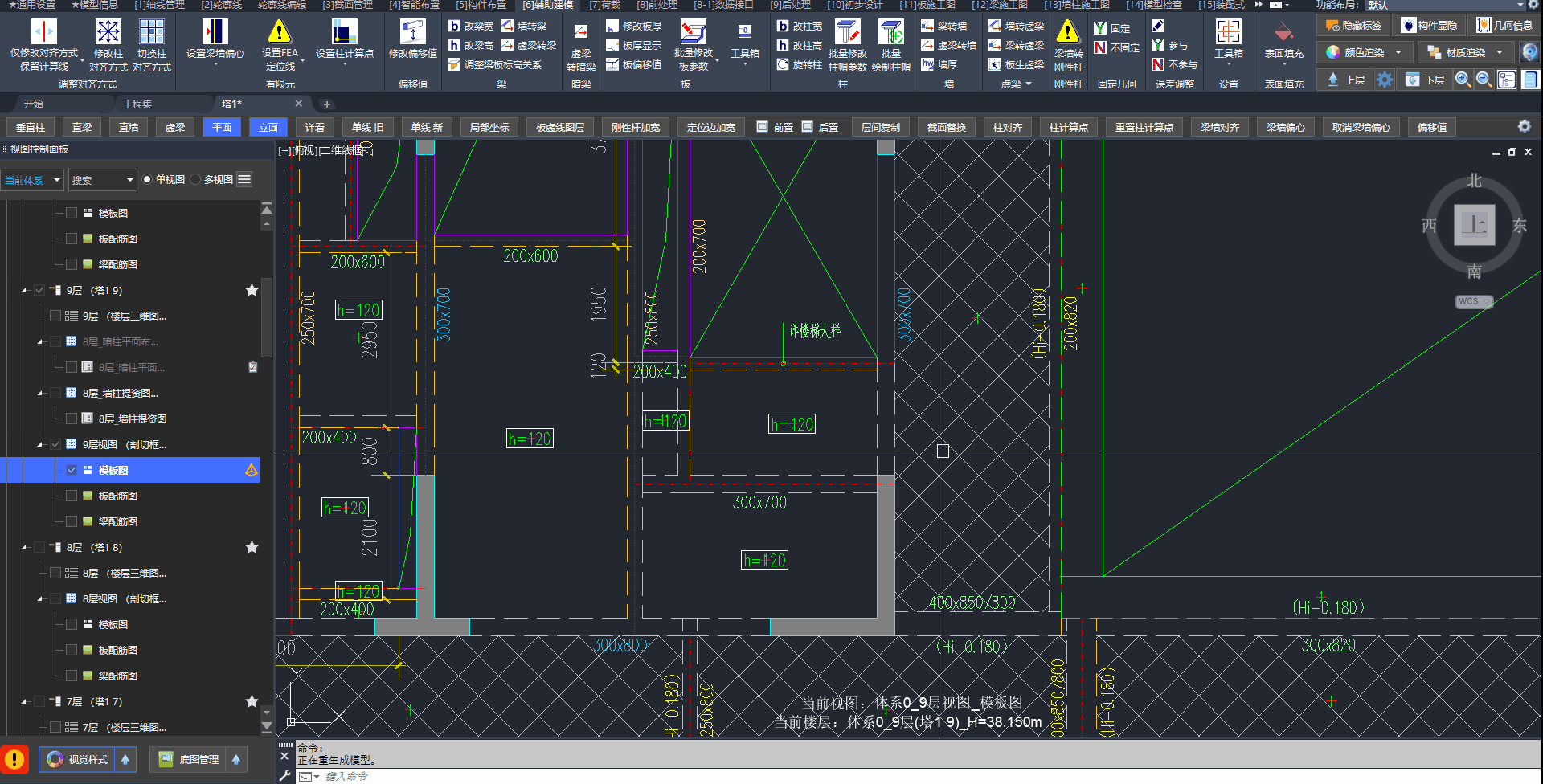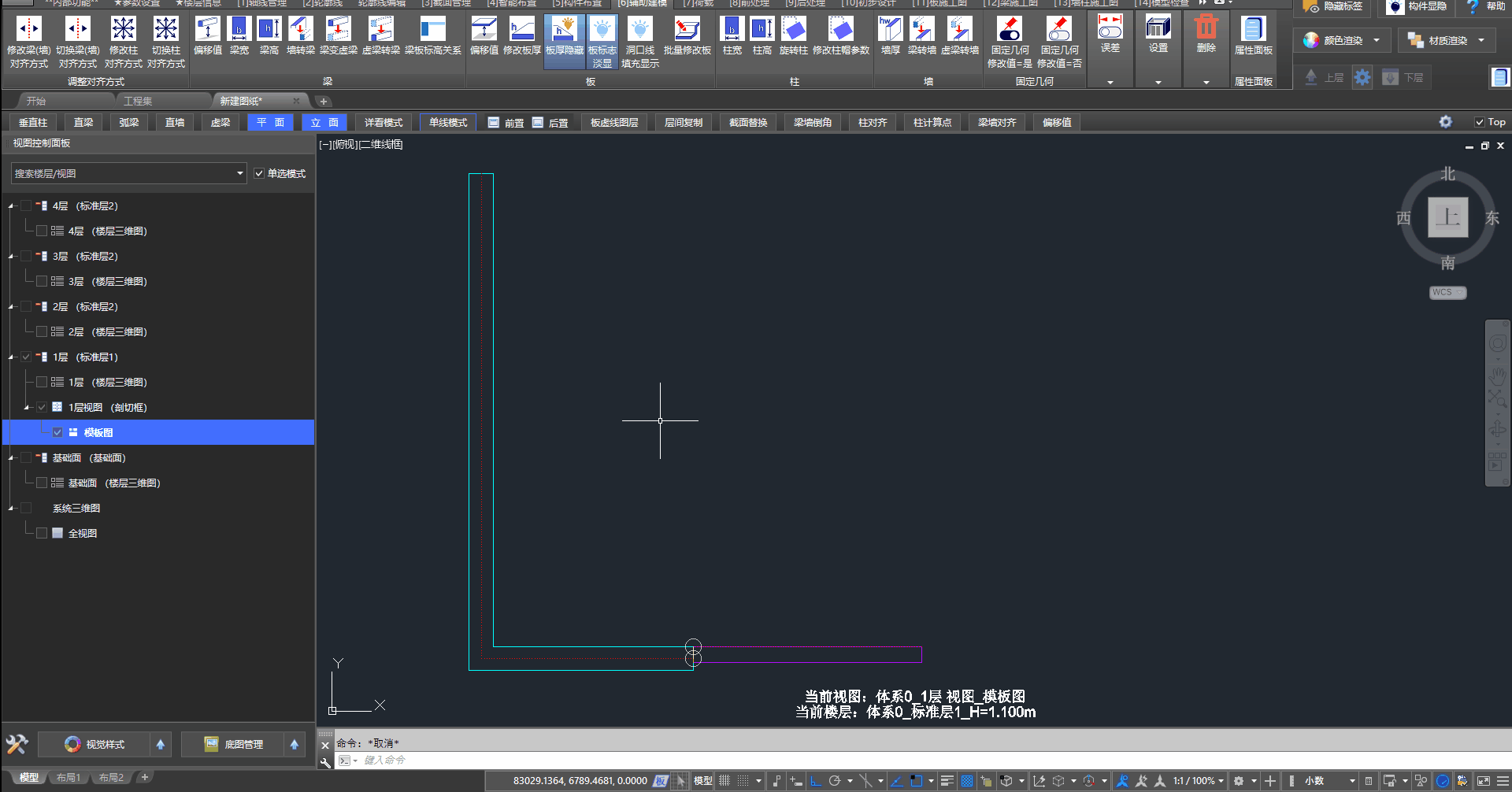 通过图中捕捉的方式,快速设置梁墙的计算线。