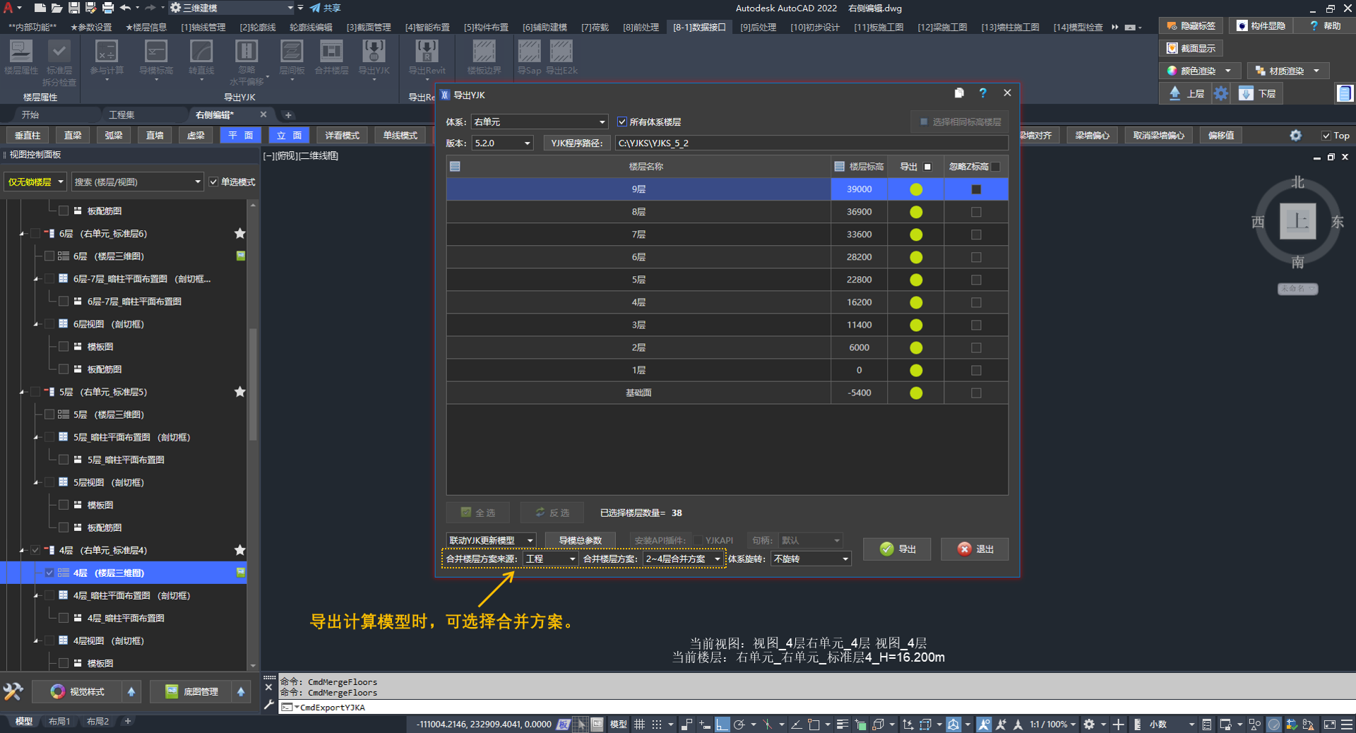 在导模界面选择“合并楼层”的方案