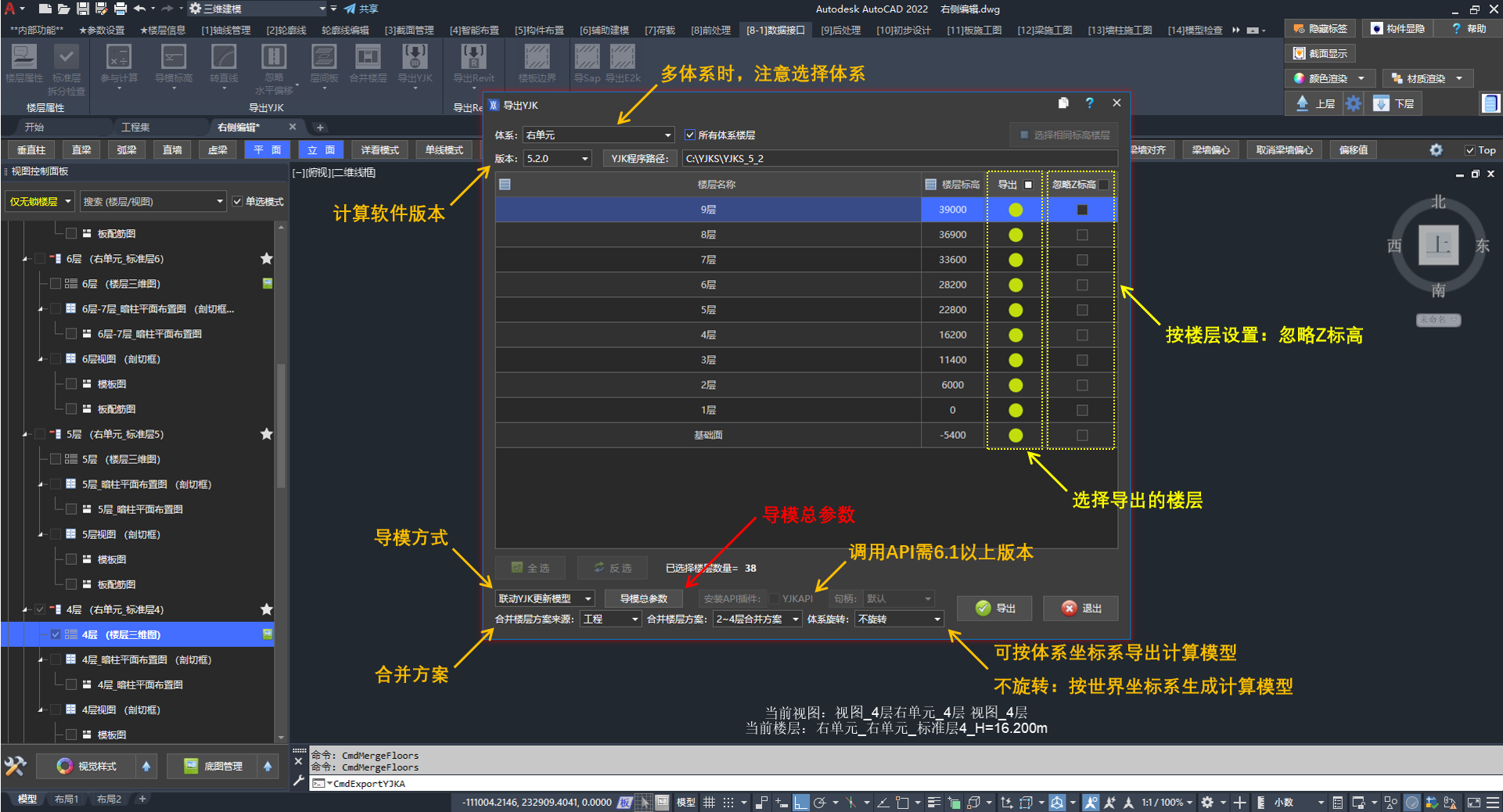 仅导出(.ydb)数据库,缺失楼层表信息和前处理总参。
