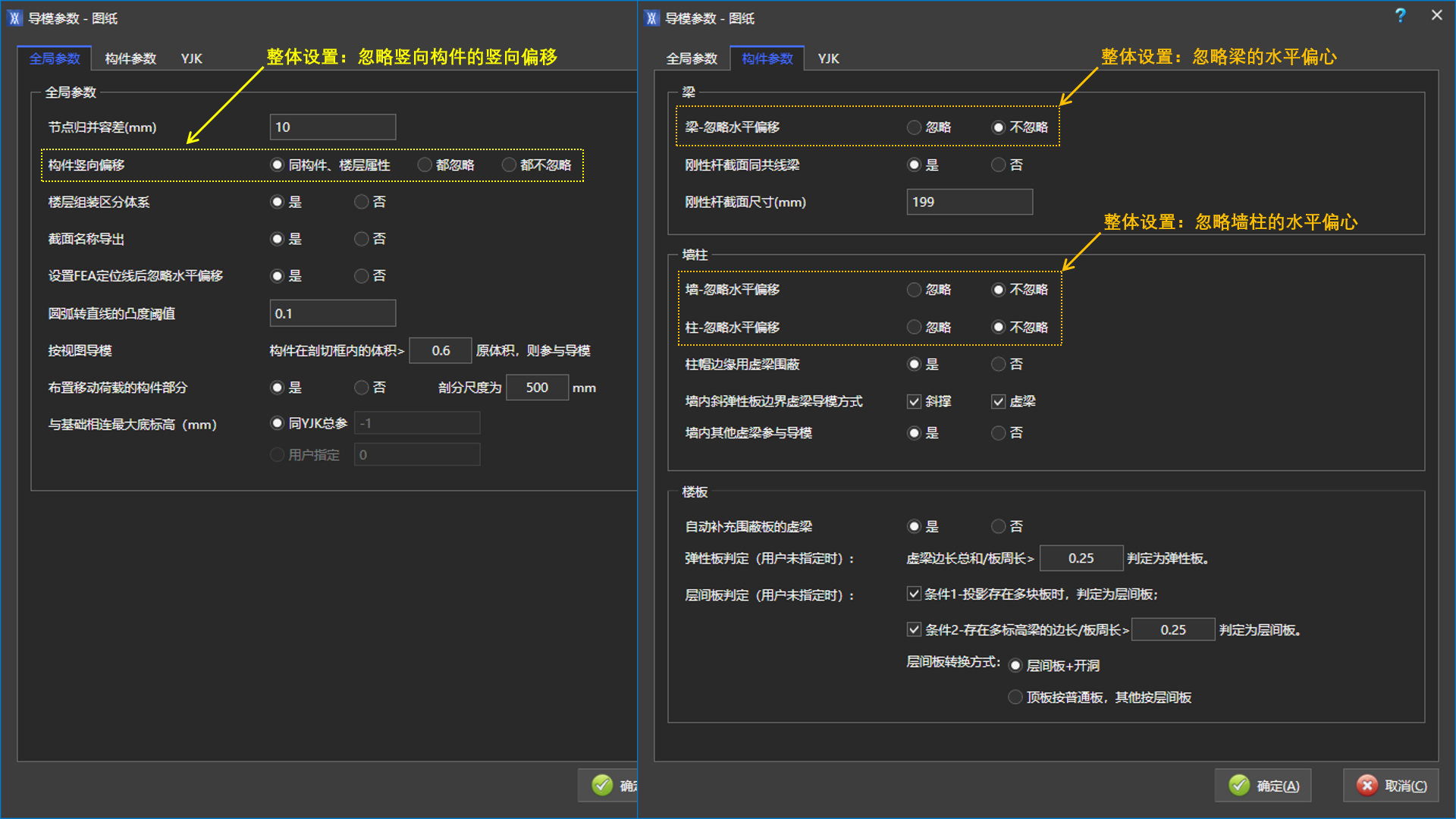 | 全局参数 | 构件竖向偏移 | 整体指定是否忽略竖向偏移 |
