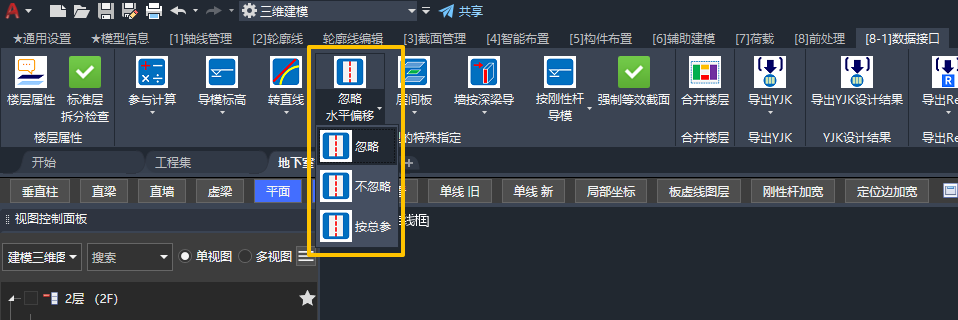 用户可设置:单个构件是否忽略📍水平偏移 生成计算模型。