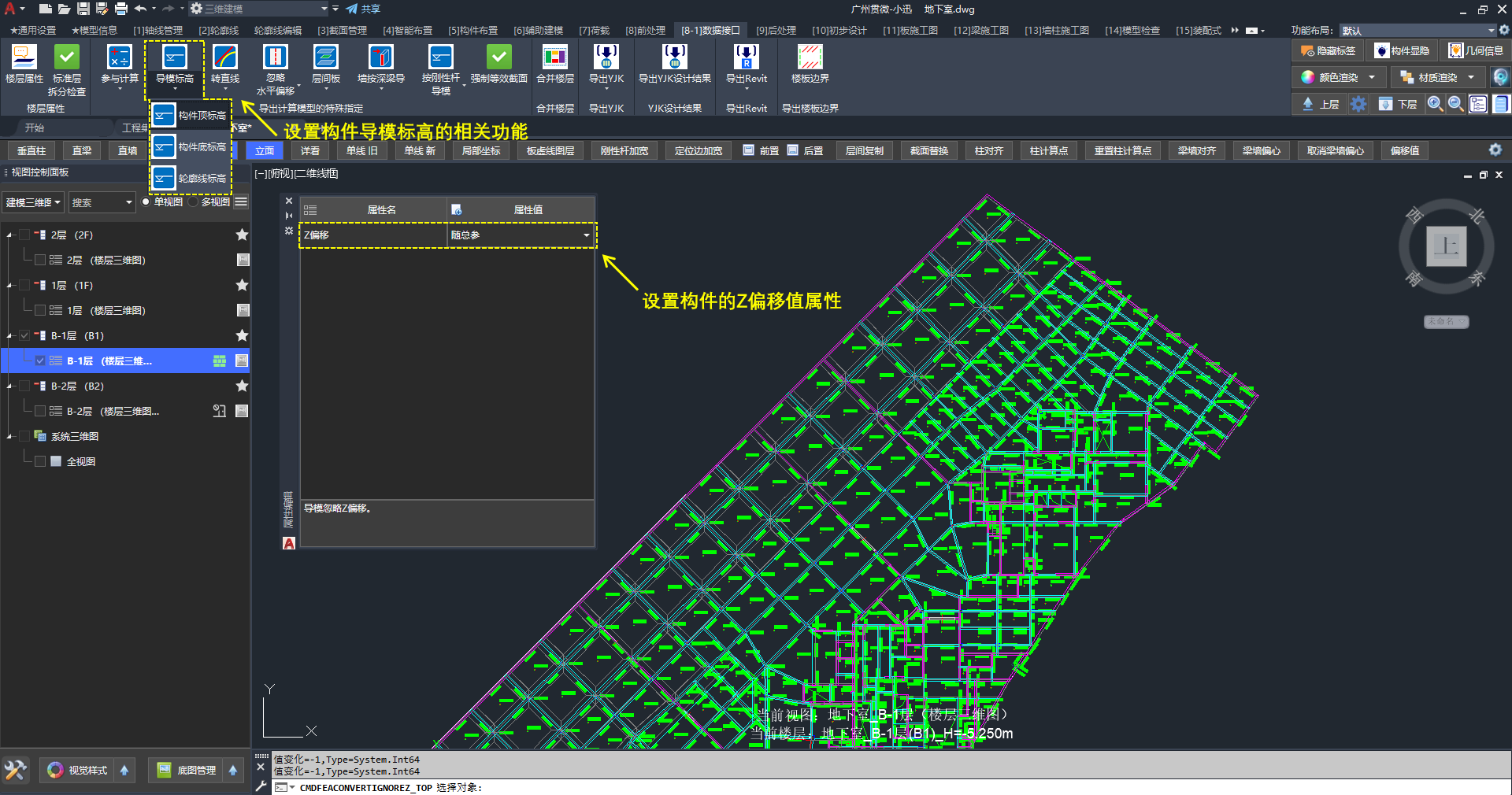 设置构件导模标高的相关功能