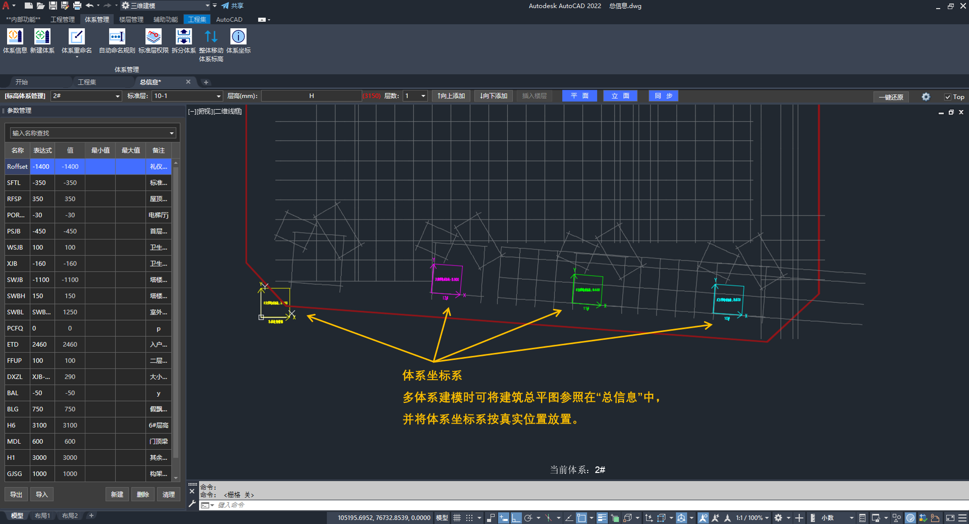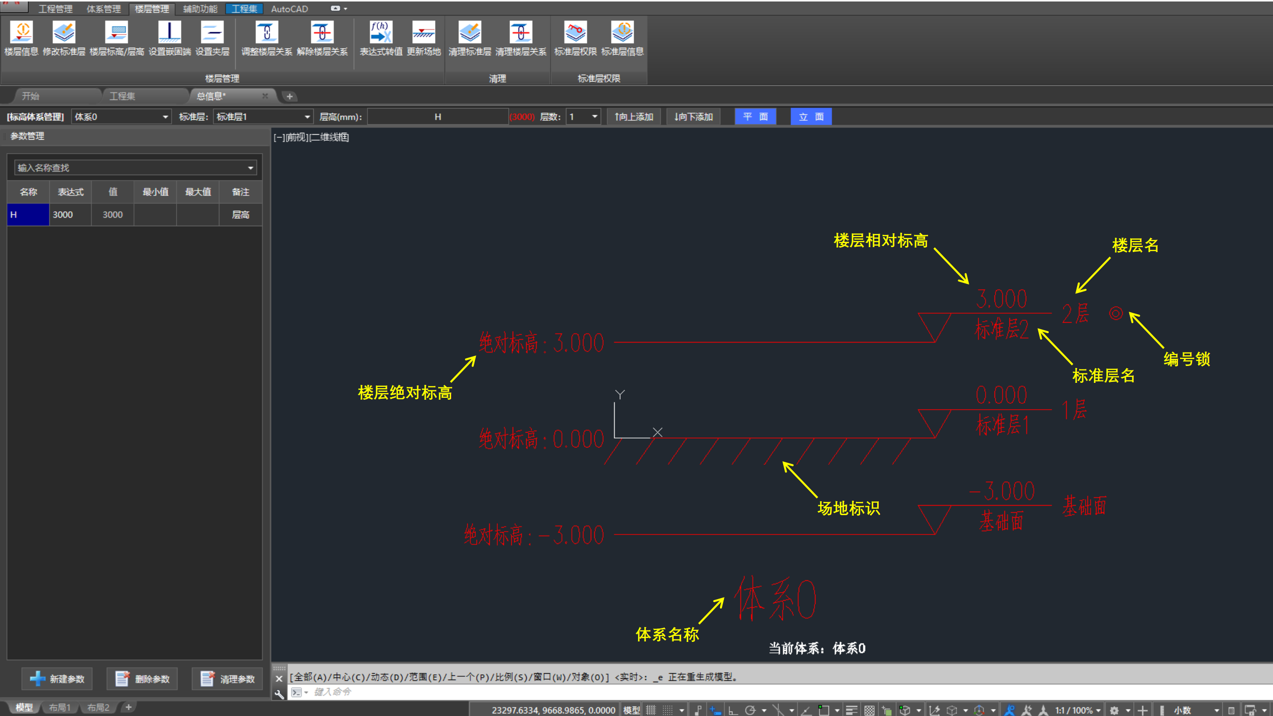 一个工程项目的所有塔楼(体系)、楼层、标准层、标高/层高等信息均在"总信息"进行设置。