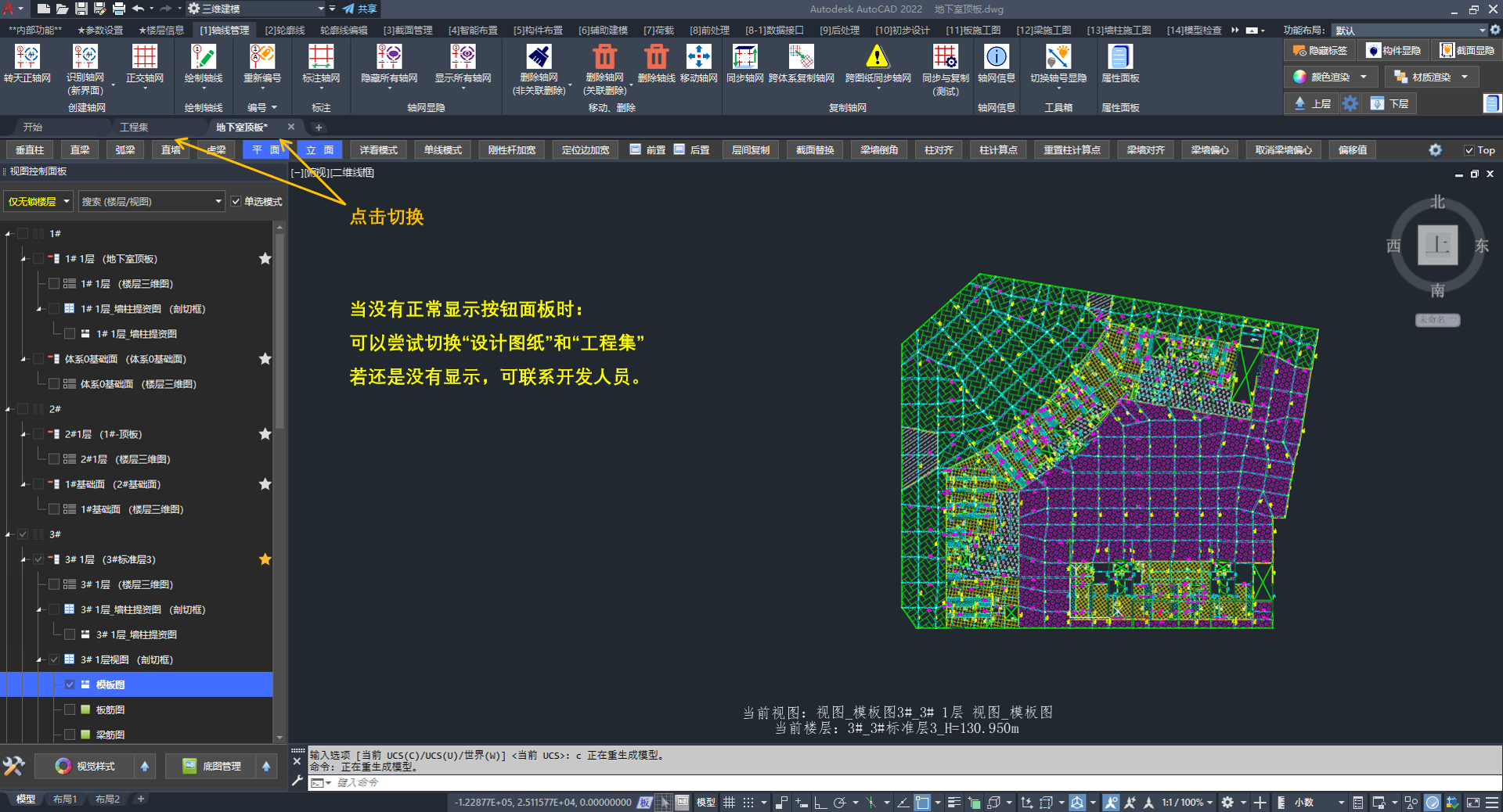 答:可尝试切换到“工程集”,触发功能按钮面板的刷新。