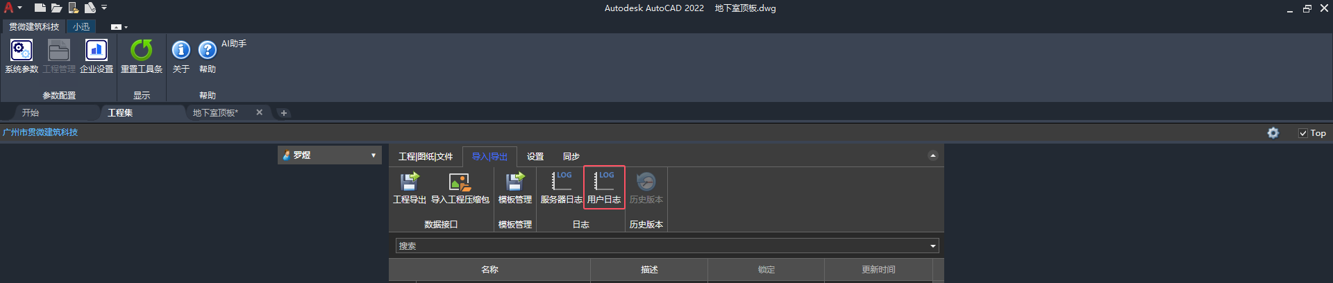 工程集"用户日志"按钮