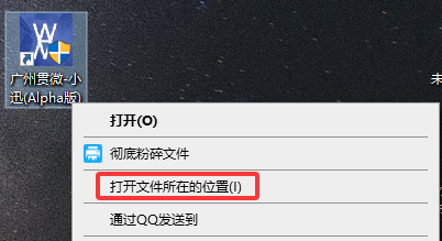 图标处右键,选择“打开文件所在的位置”