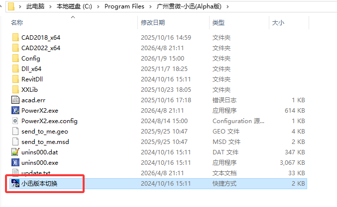 在安装目录中找到“小迅版本切换”功能