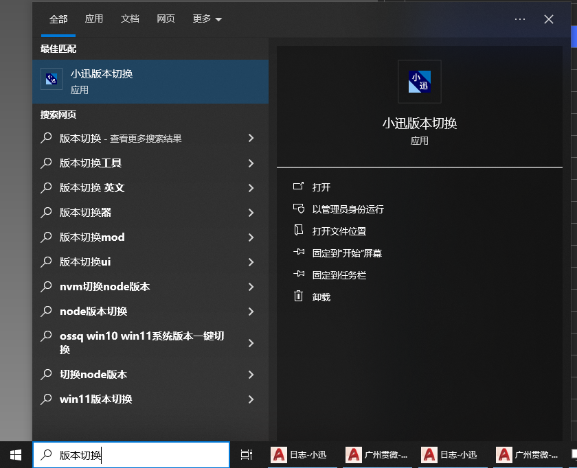 或者利用Win搜索功能,打开"小迅版本切换"
