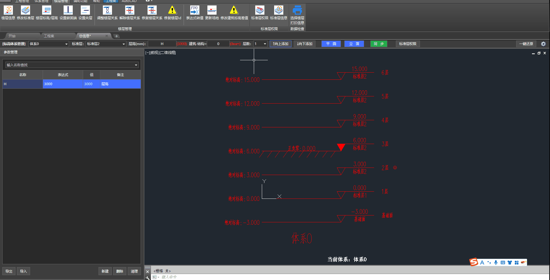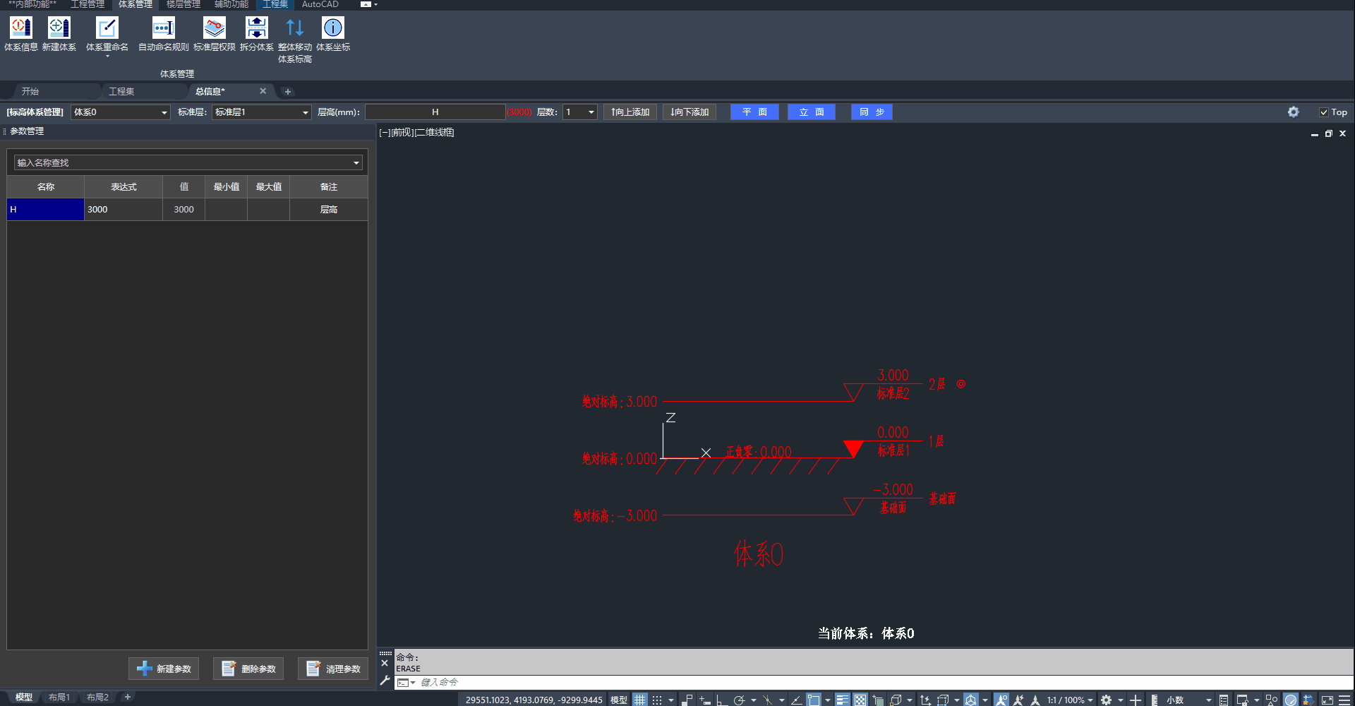 在默认体系中,"2层"带有"编号锁",删除时会弹窗提示"体系中至少存在一个编号层"。