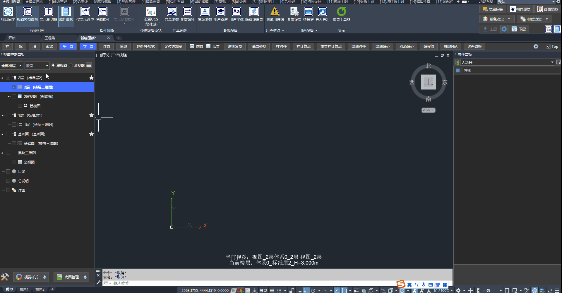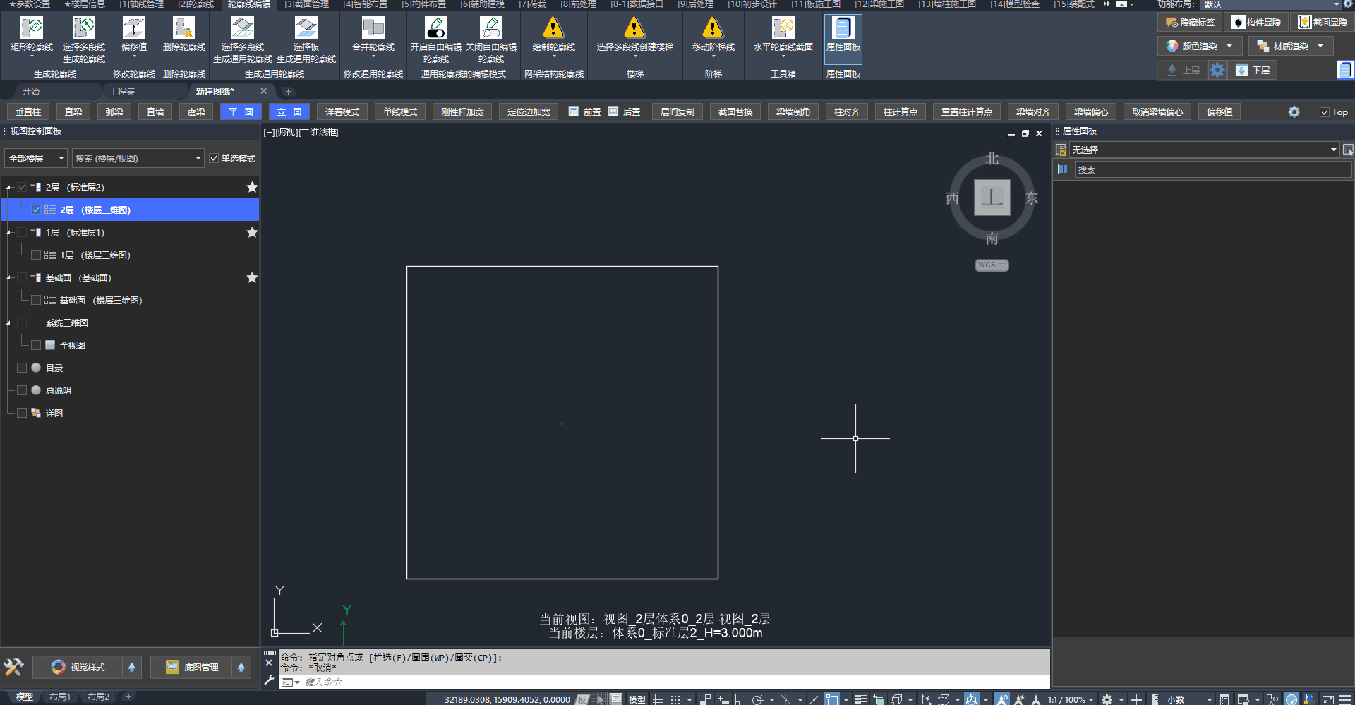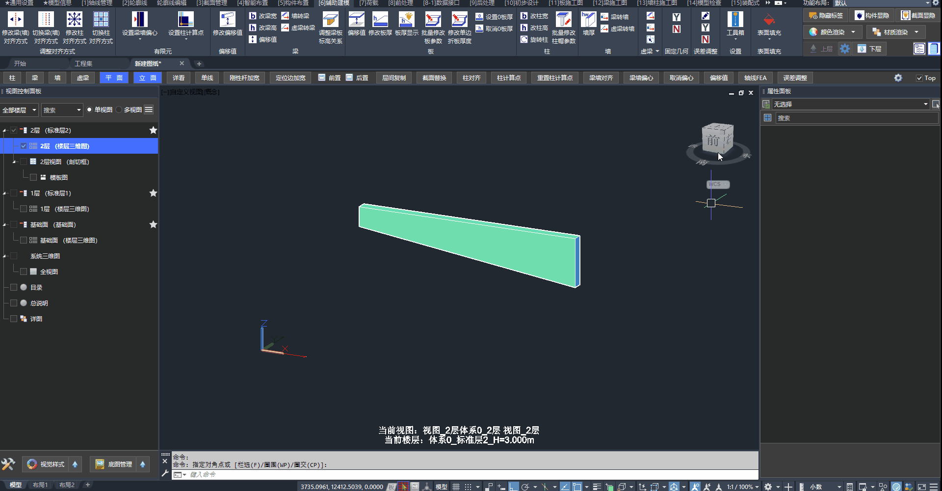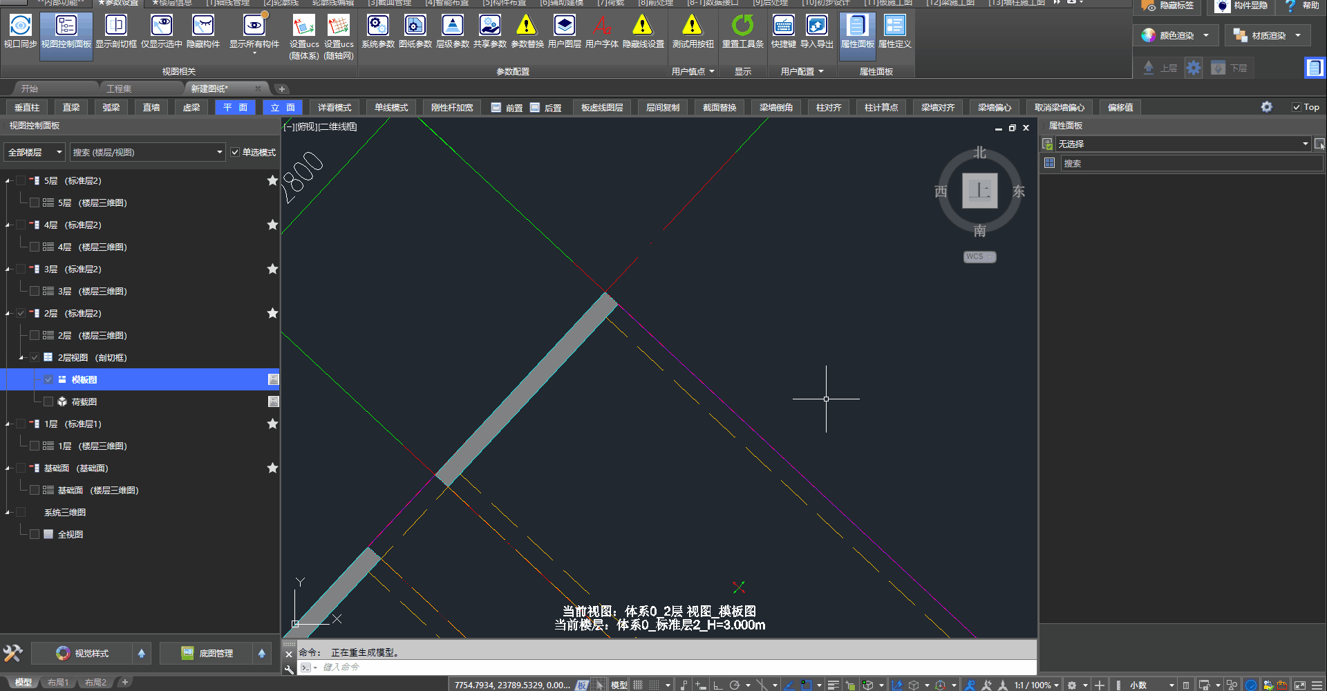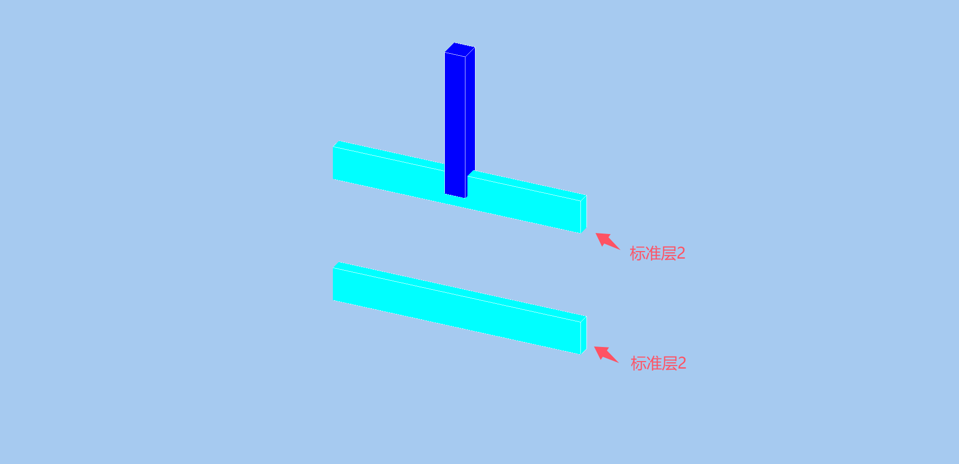 - 二、三层均为“标准层2”。在三层布置一条梁,二层、三层均会出现这条梁。