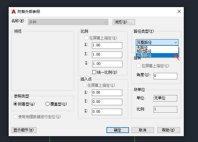选择"完整路径"后,可选择多个.dwg。