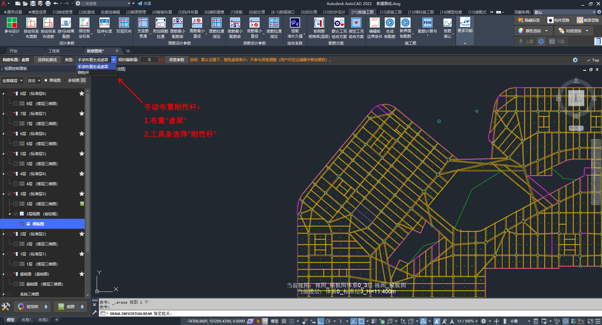 自定义视图类型(梁施工图),可单独控制不表达板填充。