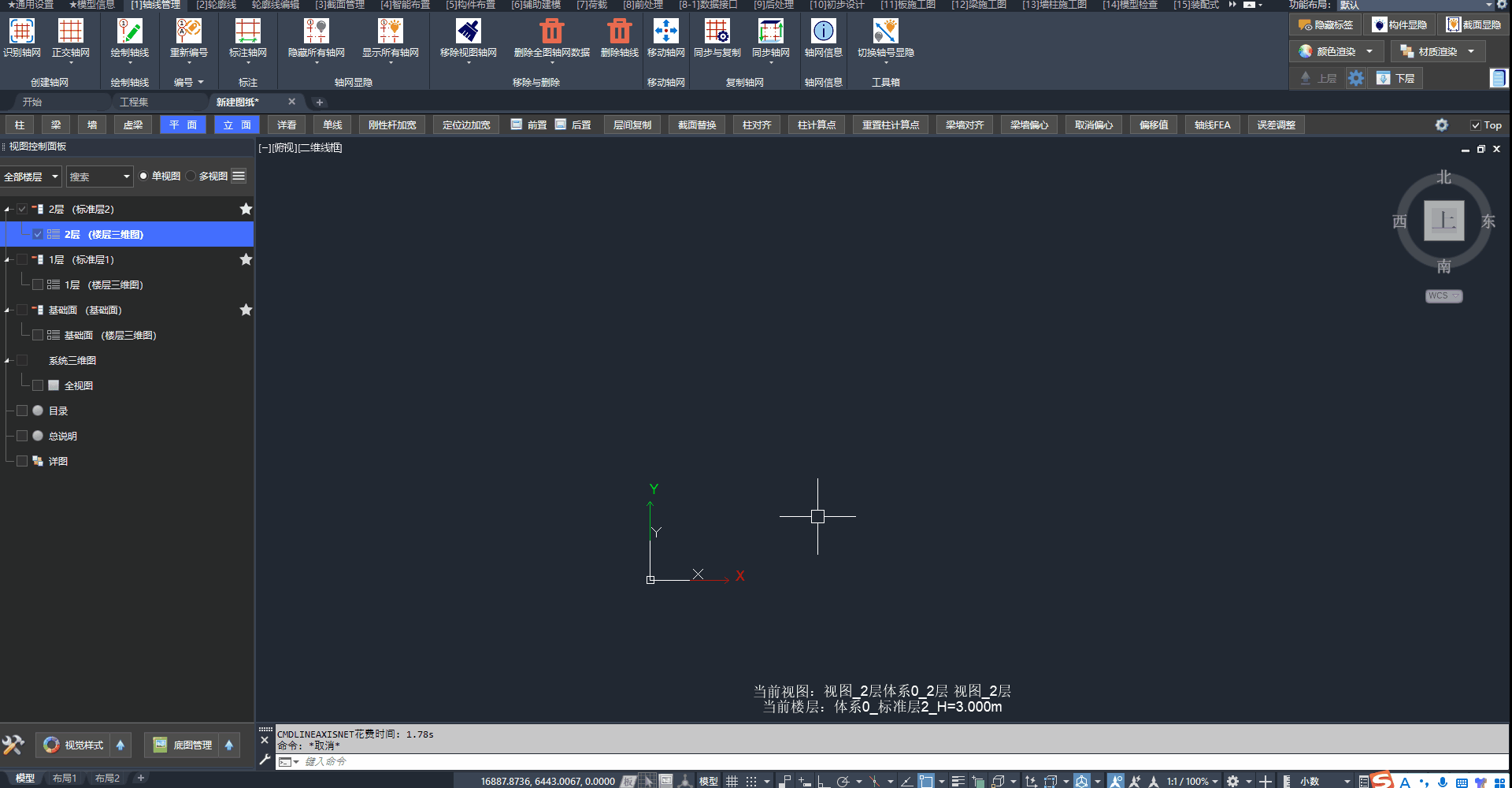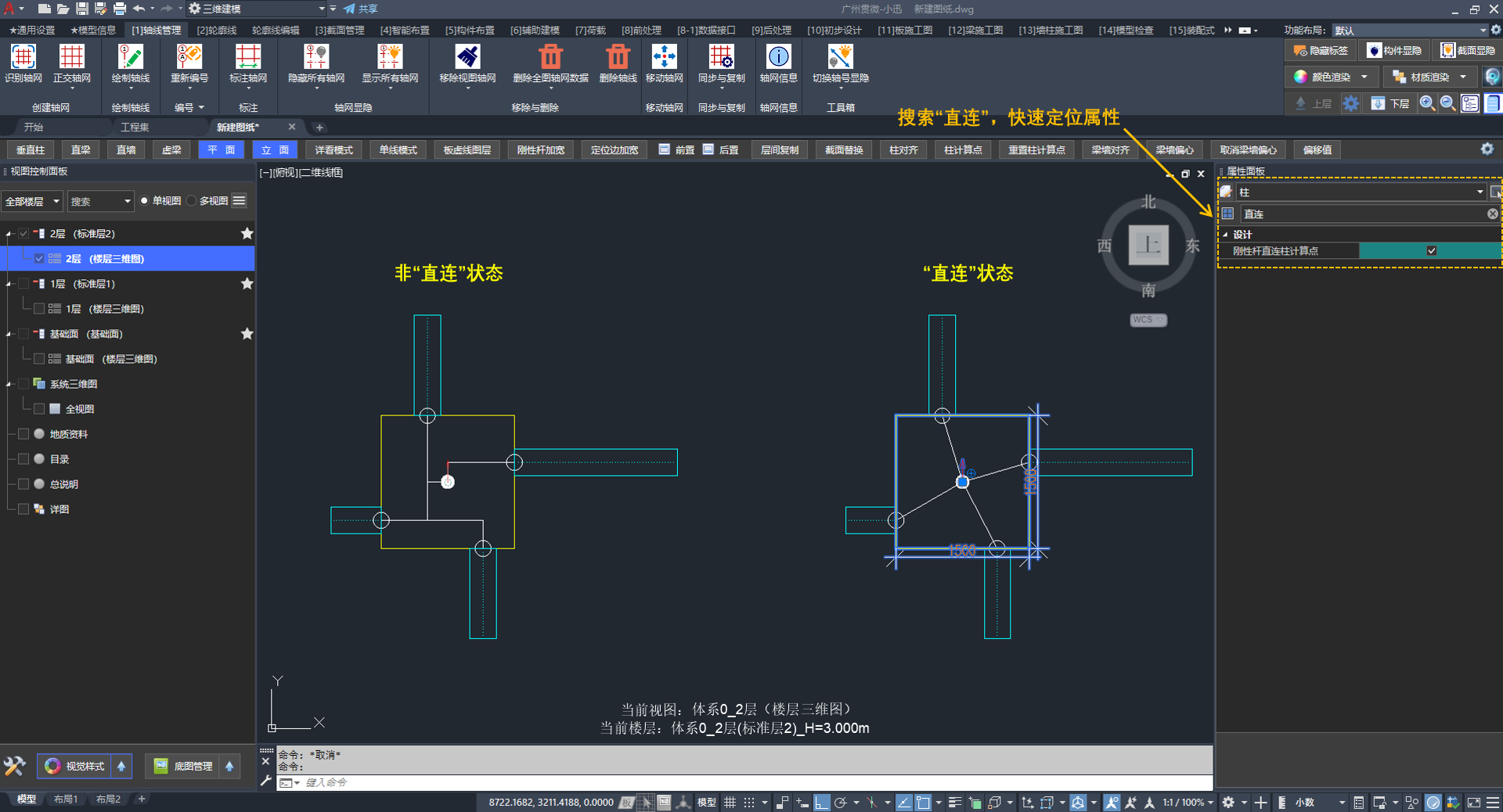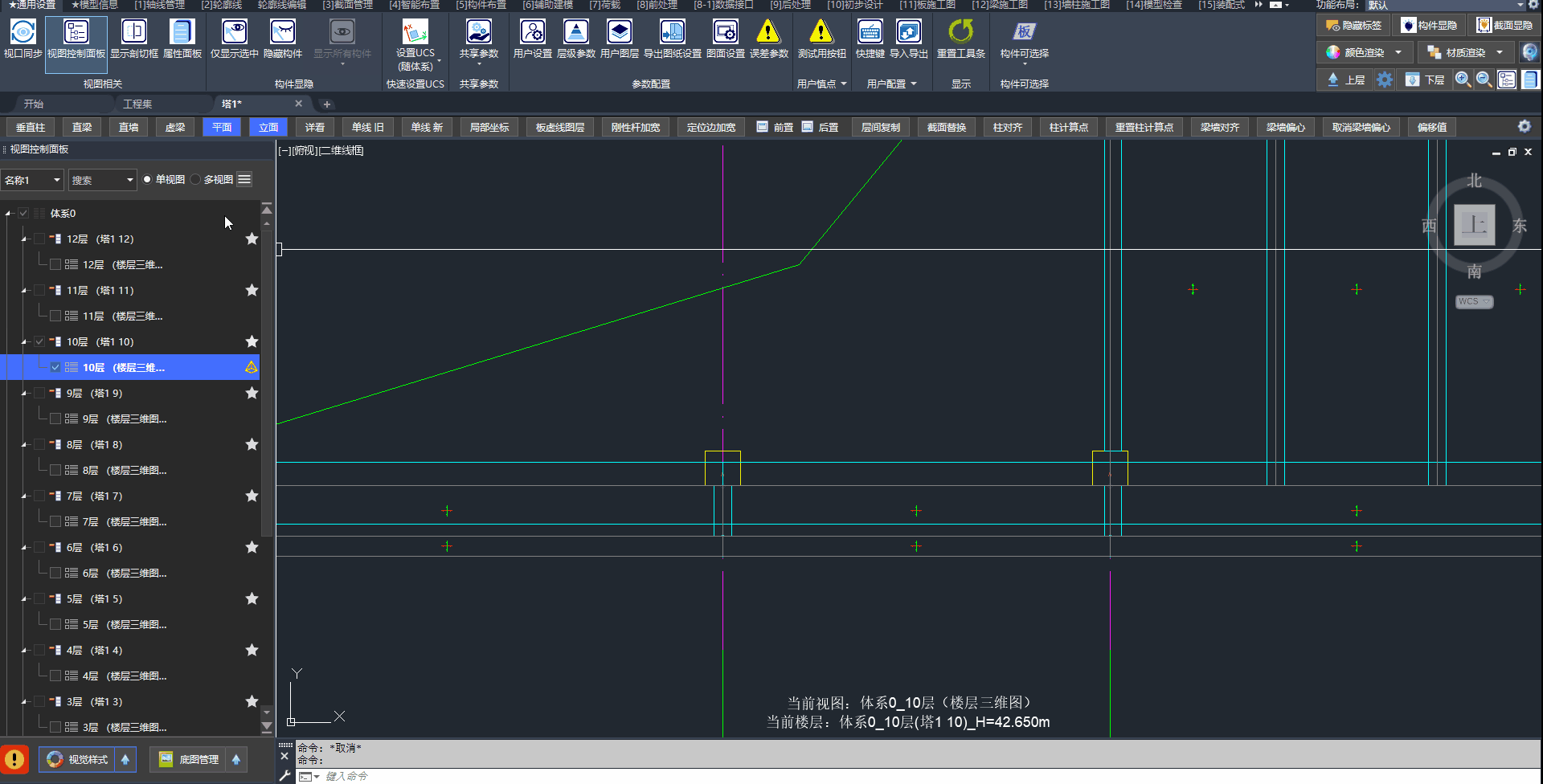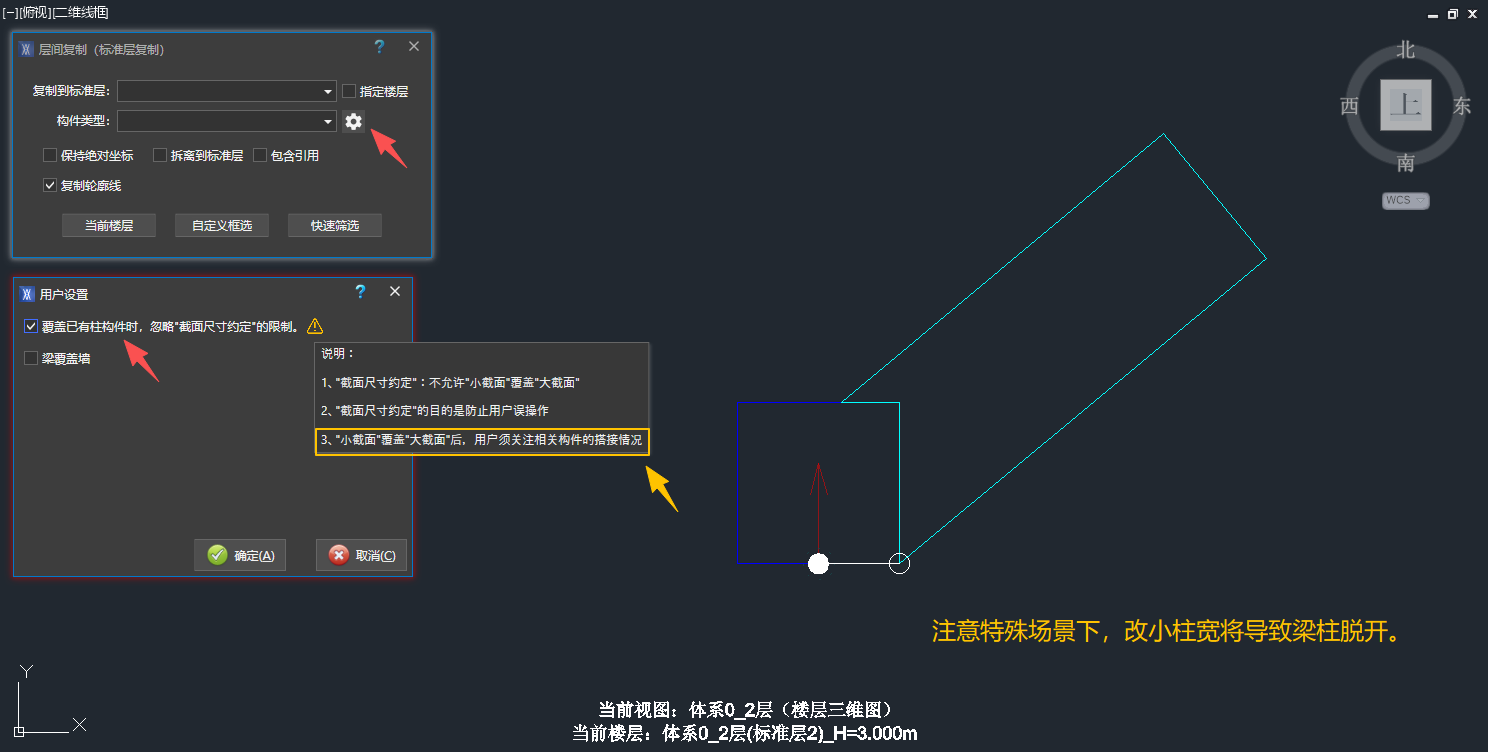 答:垂直柱的截面转角随视图UCS变化,可快速设置UCS随体系或随轴网。