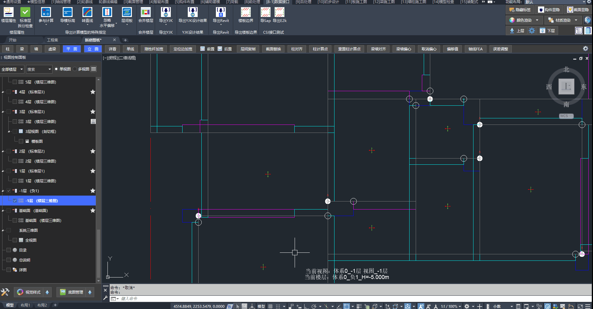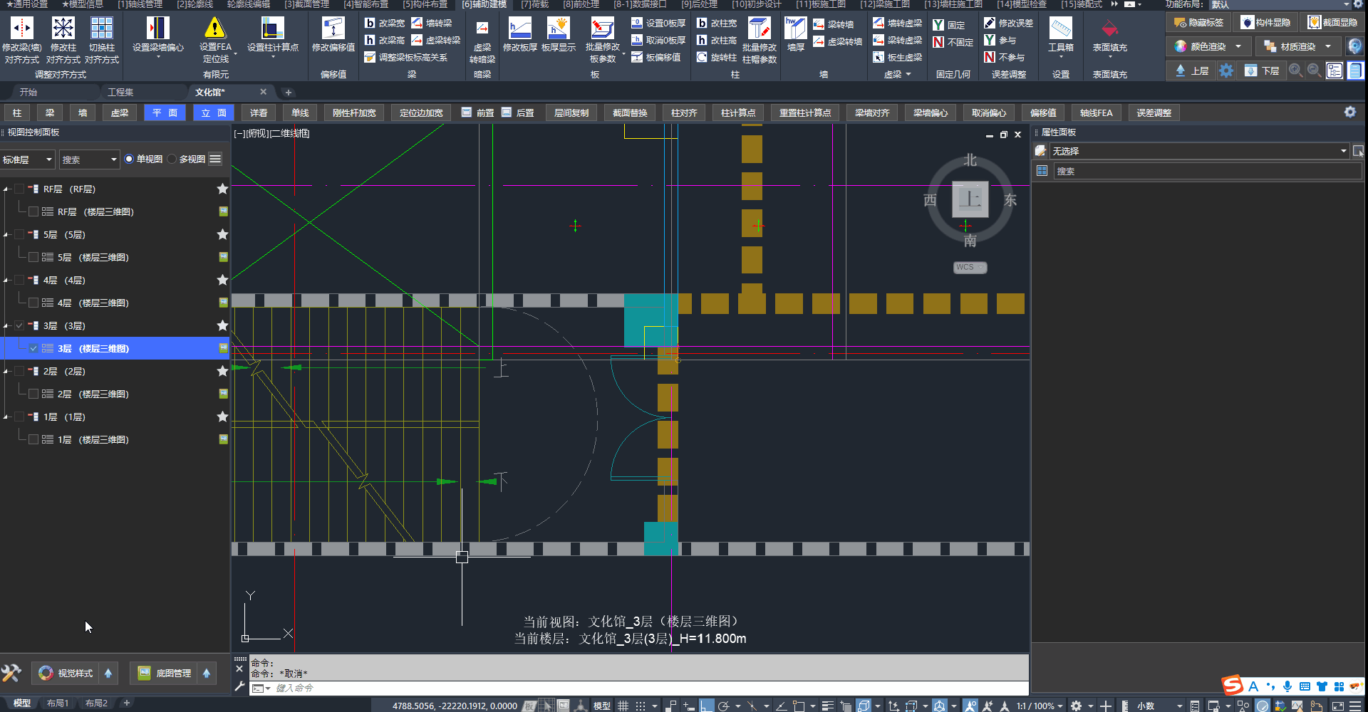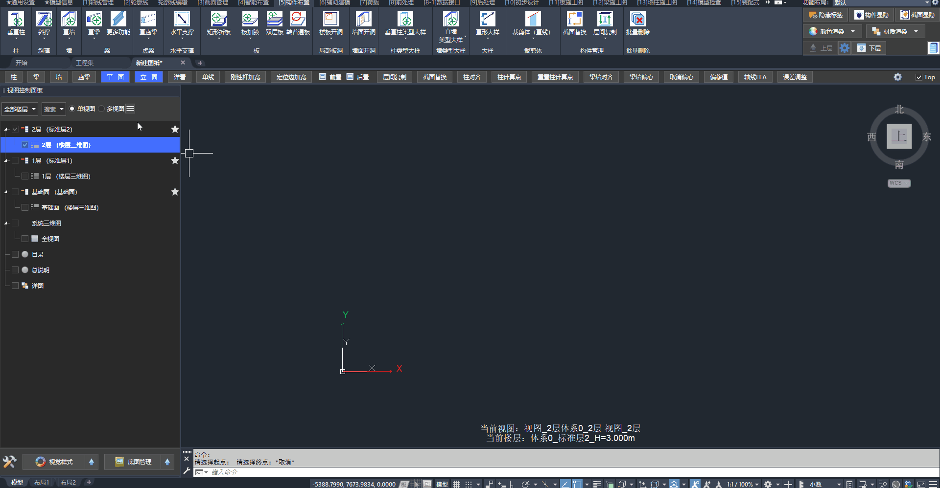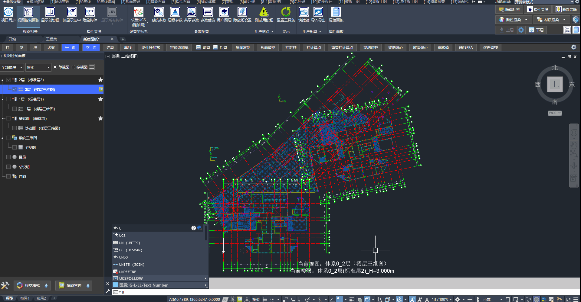 答:垂直柱的截面转角随视图UCS变化,可快速设置UCS随体系或随轴网。