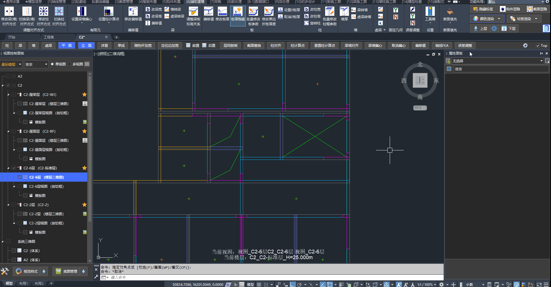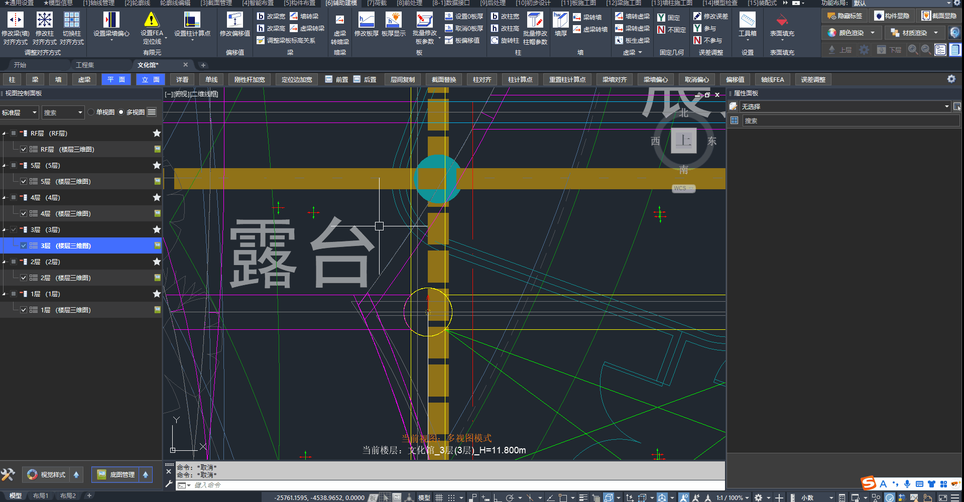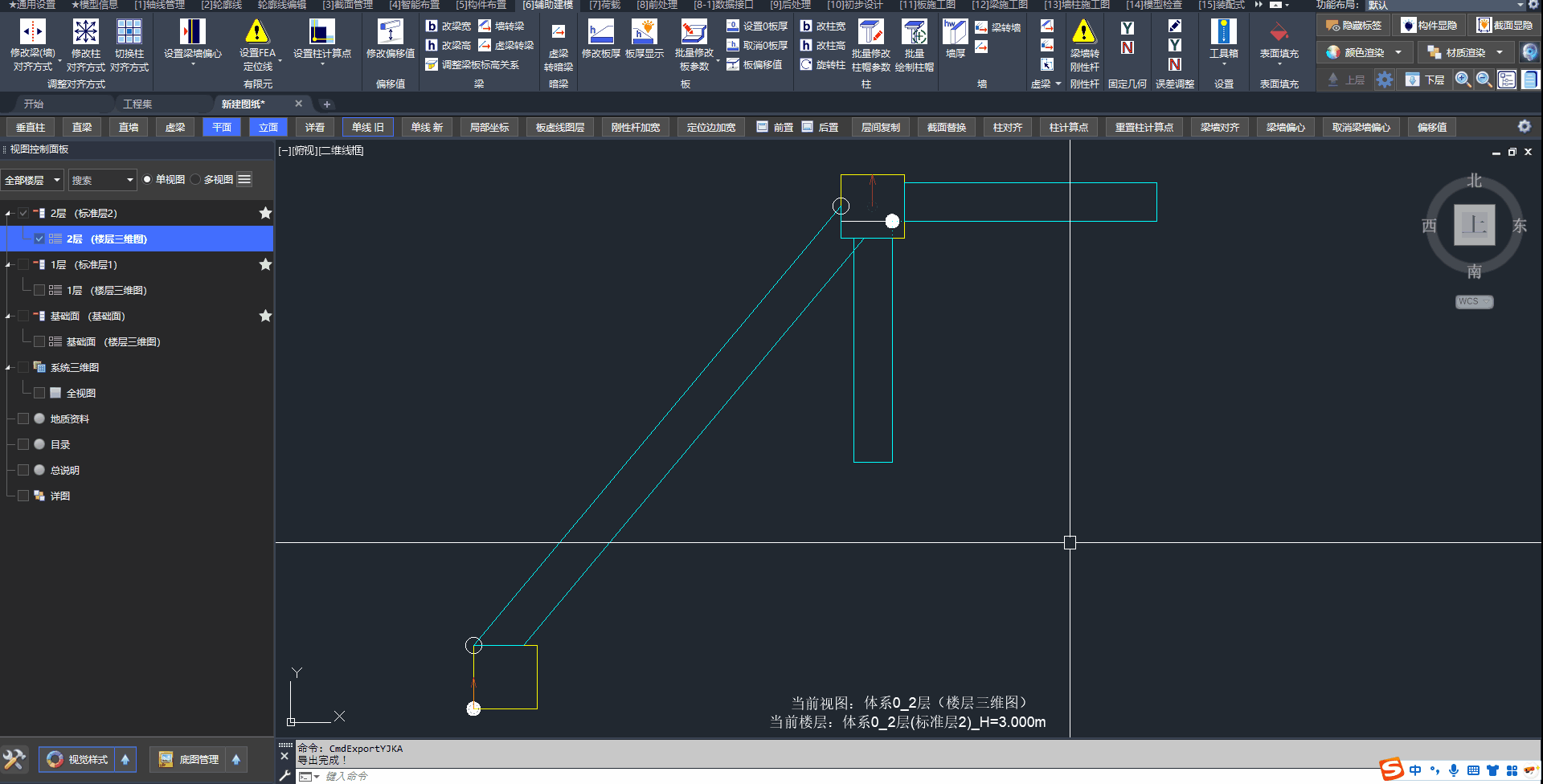 - 由于相交处理,三层的梁将会被柱子打断。这意味着二层、三层构件将不一致。