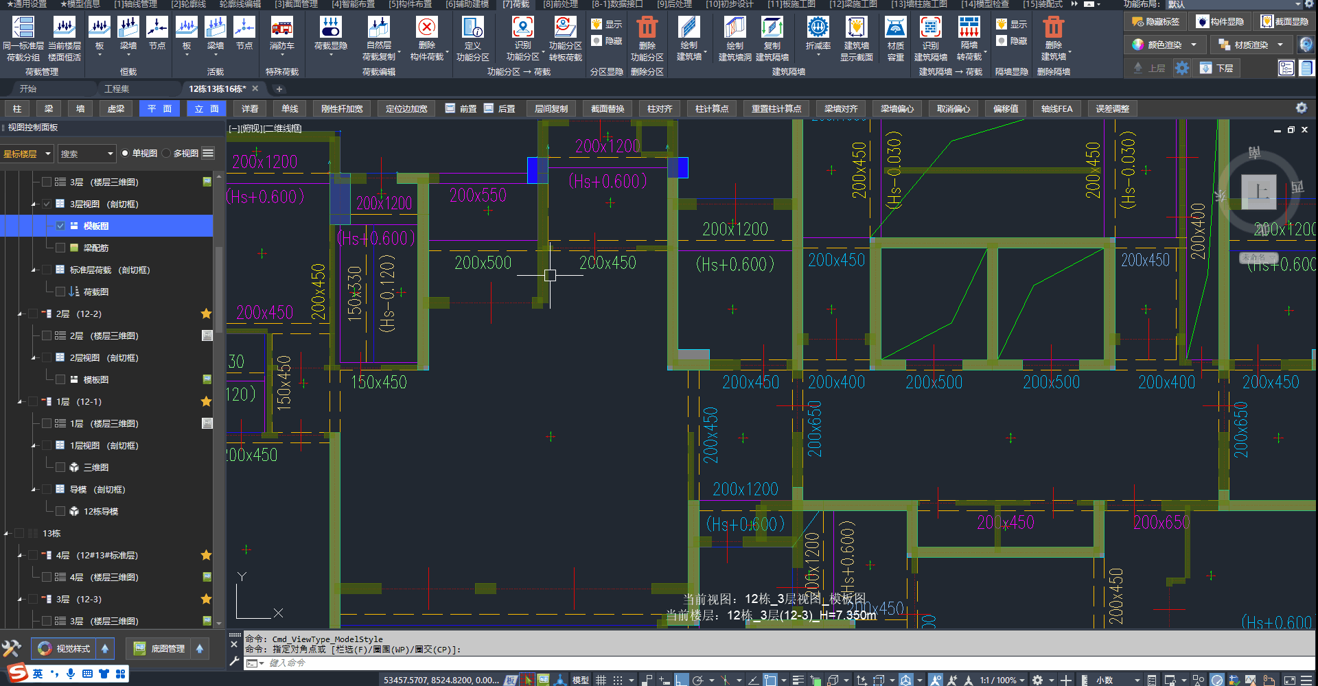 1、在荷载图中定义功能分区(功能分区的信息绑定在视图)。