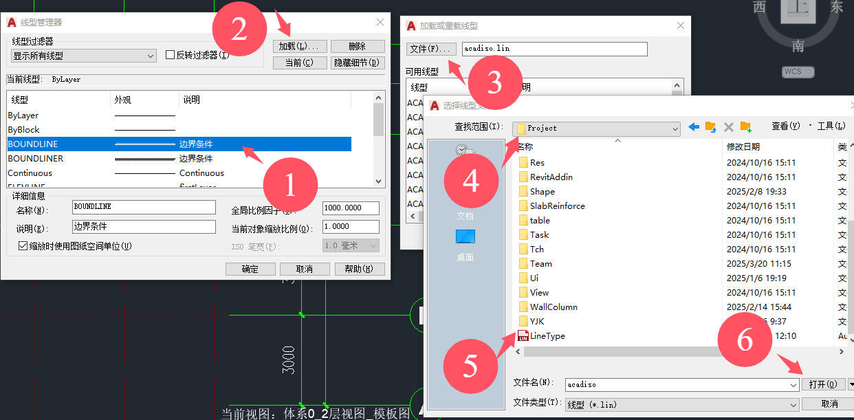 - 选择手动加载BOUNDLINE对应的线型。