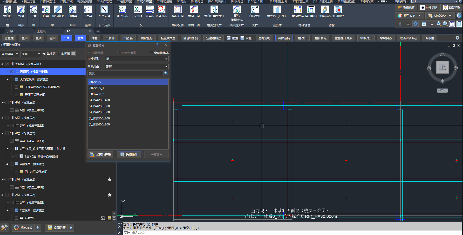 如果存在截面尺寸相同,但名称不同的情况。用户可通过截面替换的“全替换模式”,清除多余的重复截面。